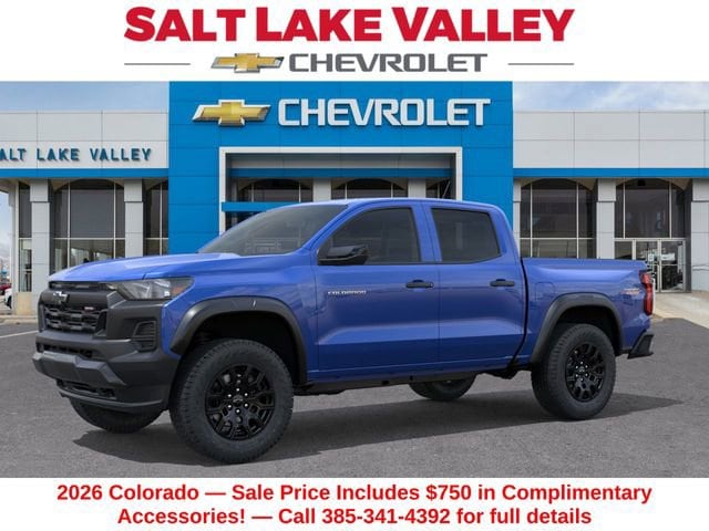 Recent Arrival! Discover the new Chevrolet Colorado at Salt Lake Valley Chevrolet in Salt Lake City! With bold design, modern technology, and reliable performance, Chevrolet makes every drive exciting. Whether it’s city streets or canyon roads, the Colorado is ready for anything. Call us today at 801-969-8221 to schedule a time to see it! --- Final price excludes tax, tag, title, documentation fees, dealer-installed options, and any market-based pricing adjustments. Financing through GM Financial is required for all discounts to apply. Special finance offers may not be combined with certain factory incentives. While we strive for accuracy, errors may occur please verify all information with a sales representative. For the most accurate pricing, call (801) 969-8221 or visit us in person. Prices and payments are subject to change based on manufacturer incentives. Price includes $500 Chevrolet Consumer Cash Program and $1,500 Trade-In Allowance for customers trading a 2019 or newer passenger car or truck with under 80,000 miles toward a new 2025 2026 Chevrolet. Branded or salvage title vehicles do not qualify. Some restrictions apply. See dealer for details.