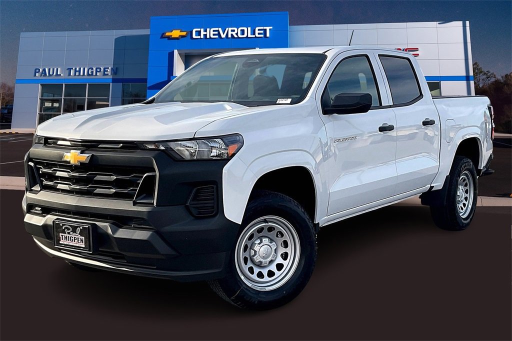 Paul Thigpen Chevrolet GMC has New car Preped this 2026 Chevrolet Colorado and comes with the following Advanced Trailering Package (Automatic Locking Rear Differential, Blind Zone Steering Assist with Trailering, and Trailering App), Heavy-Duty Trailering Package (Integrated Trailer Brake Controller), Preferred Equipment Group 2WT (Automatic Emergency Braking, Chevy Safety Assist, Following Distance Indicator, Forward Collision Alert, Front Pedestrian and Bicyclist Braking, IntelliBeam Automatic High Beam on/Off, and Lane Keep Assist with Lane Departure Warning), 220 Amp Alternator, 3.42 Rear Axle Ratio, 4-Way Manual Passenger Seat Adjuster, 4-Wheel Disc Brakes, 6 Speakers, 6-Speaker Audio System Feature, 6-Way Manual Driver Seat Adjuster, ABS brakes, Air Conditioning, AM/FM radio: SiriusXM with 360L, Apple CarPlay/Android Auto, Auto High-beam Headlights, Brake assist, Cargo Tie-Down Rings (set of 4), Cloth Seat Trim, Delay-off headlights, Driver door bin, Driver vanity mirror, Dual front impact airbags, Dual front side impact airbags, Electronic Stability Control, Emergency communication system: OnStar, Front anti-roll bar, Front Bucket Seats, Front Center Armrest, Front License Plate Kit, Front wheel independent suspension, Heated door mirrors, Low tire pressure warning, Navigation System, Occupant sensing airbag, Overhead airbag, Panic alarm, Passenger door bin, Passenger vanity mirror, Power door mirrors, Power steering, Power windows, Radio data system, Radio: 11.3 Diagonal Advanced Color LCD Display, Rear step bumper, Rear window defroster, Remote keyless entry, Security system, SiriusXM with 360L Trial Subscription, Speed control, Speed-sensing steering, Split folding rear seat, Steering Wheel Mounted Audio Controls, Steering wheel mounted audio controls, Tachometer, Tilt steering wheel, Traction control, Trip computer, Variably intermittent wipers, Wheels: 17 x 8 Ultra Silver Metallic Steel.