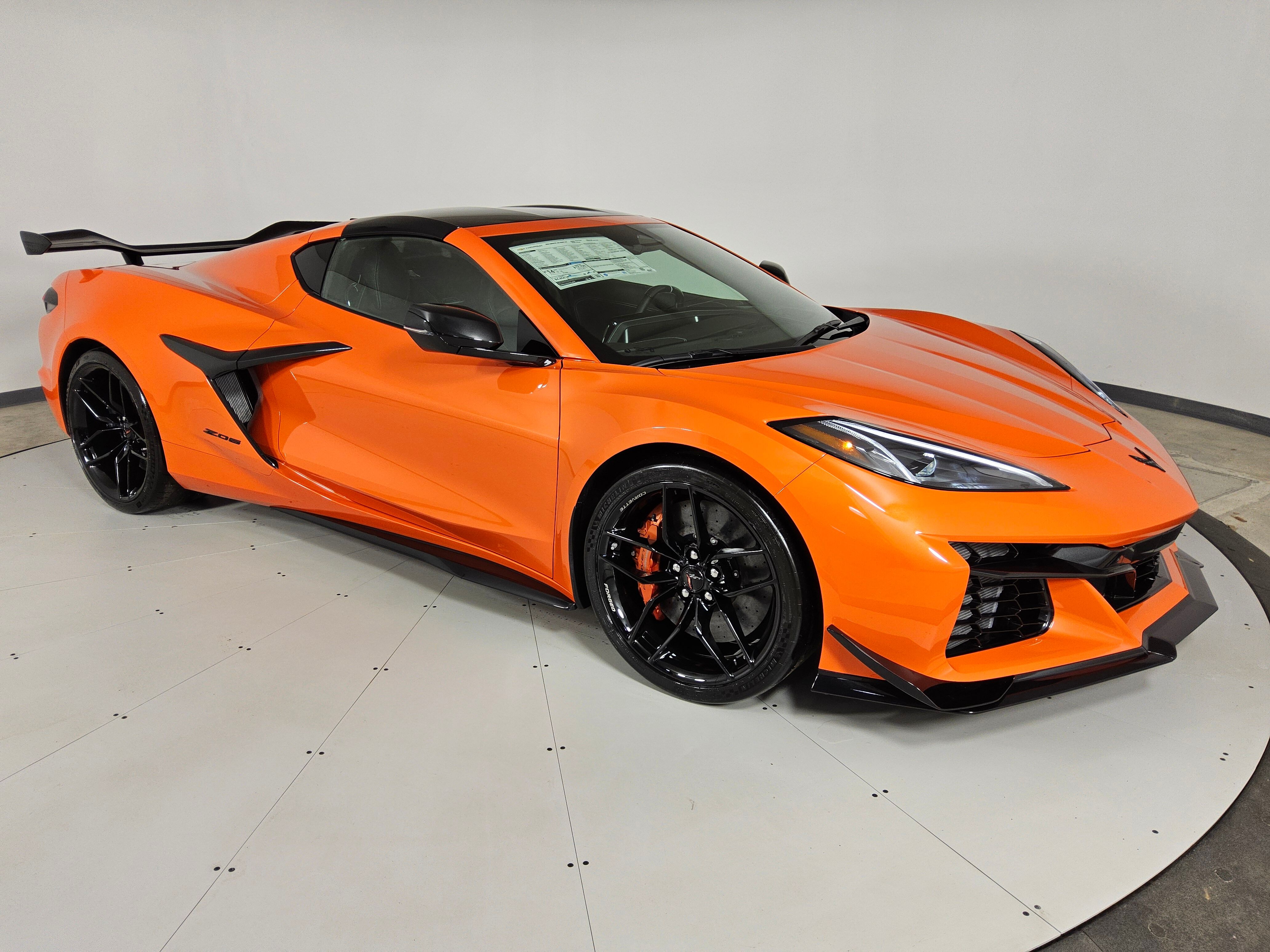 The 2026 Chevrolet Corvette Z06 3LZ features a 5.5L V8 DI high-output flat plane crank engine with an 8600 RPM redline, delivering 670 horsepower and 460 lb-ft of torque. This rear-wheel drive coupe offers a premium driving experience with advanced technology, comfort, and performance features. The Sebring Orange Tintcoat exterior is complemented by a Jet Black interior, both enhanced by carbon fiber and leather accents. The vehicle is equipped with the latest in safety, connectivity, and driver assistance systems, making it a standout for both enthusiasts and new drivers.