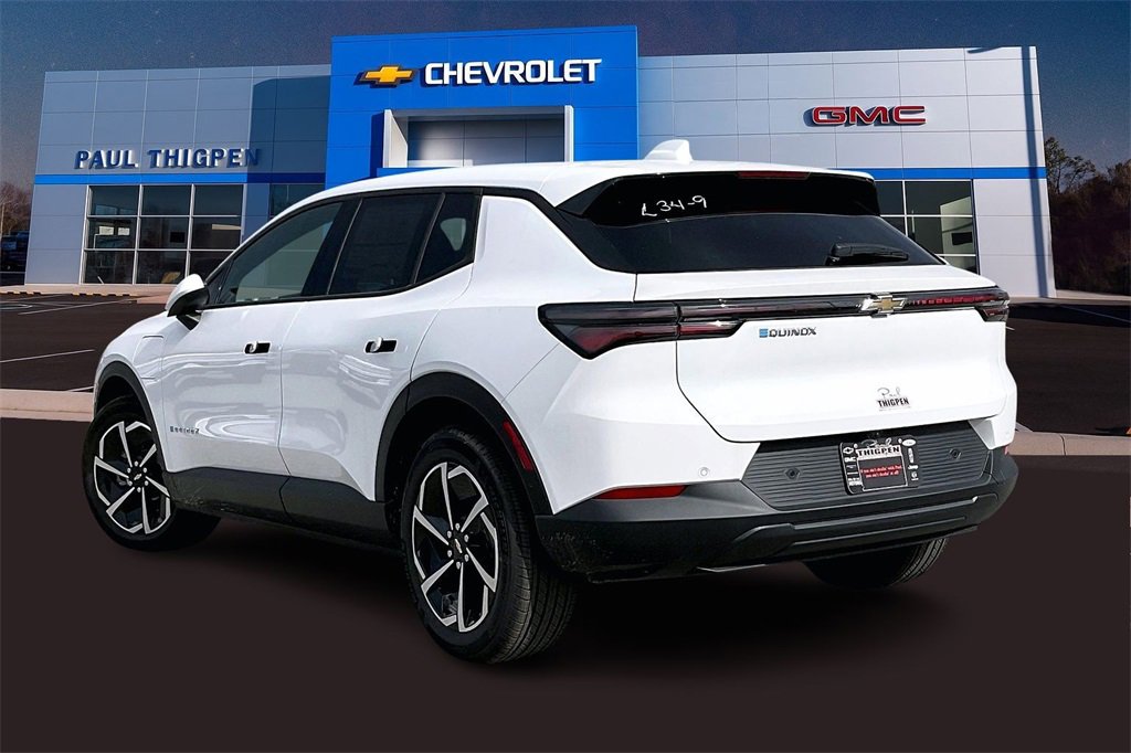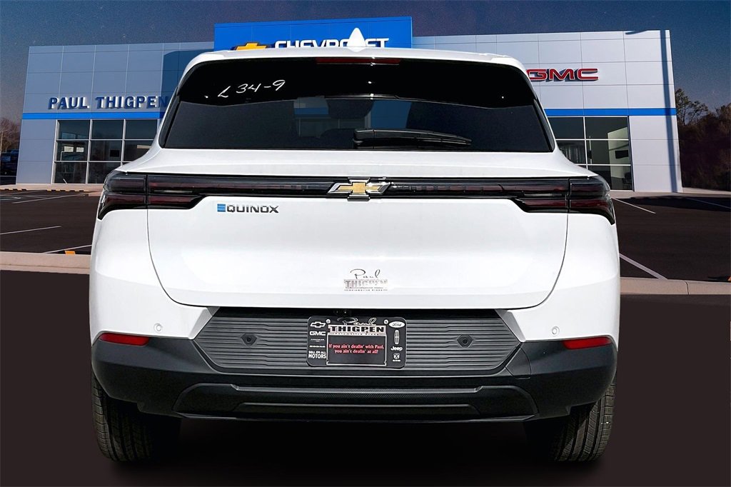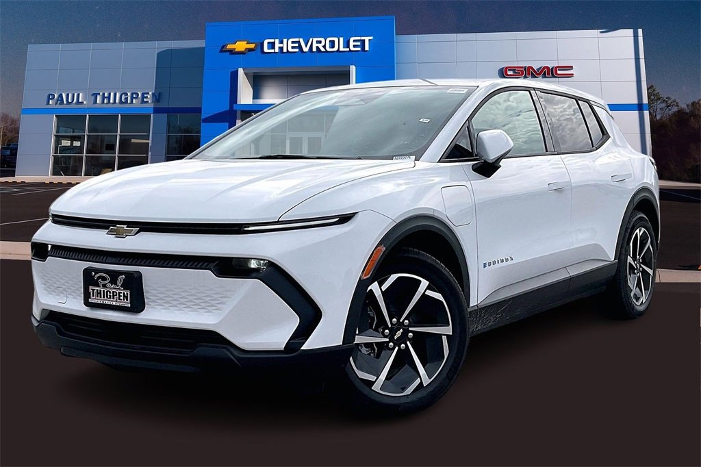 Paul Thigpen Chevrolet GMC has New car Preped this 2026 Chevrolet Equinox EV and comes with the following 19 Wheels, 4-Wheel Disc Brakes, 6 Speakers, 6-Speaker Audio System Feature, ABS brakes, Air Conditioning, Alloy wheels, AM/FM radio: SiriusXM with 360L, Auto High-beam Headlights, Automatic temperature control, Brake assist, Bumpers: body-color, Cloth Seat Trim, Compass, Delay-off headlights, Driver 6-Way Manual Seat Adjuster, Driver door bin, Dual front impact airbags, Dual front side impact airbags, Electronic Stability Control, Emergency communication system: OnStar and Chevrolet connected services capable, Four wheel independent suspension, Front anti-roll bar, Front Bucket Seats, Front Center Armrest, Front Passenger 4-Way Manual Seat Adjuster, Front reading lights, Fully automatic headlights, Illuminated entry, Knee airbag, Low tire pressure warning, Navigation system: Google built-in compatibility (select service plan required, terms and limitations apply), Occupant sensing airbag, Outside temperature display, Overhead airbag, Overhead console, Panic alarm, Passenger door bin, Power door mirrors, Power steering, Power windows, Radio: 17.7 Diagonal Advanced Color LCD Display, Rear anti-roll bar, Rear reading lights, Rear seat center armrest, Rear window defroster, Rear window wiper, Remote keyless entry, Security system, SiriusXM with 360L Trial Subscription, Speed control, Split folding rear seat, Spoiler, Steering wheel mounted audio controls, Telescoping steering wheel, Tilt steering wheel, Traction control, Trip computer, Turn signal indicator mirrors, and Variably intermittent wiperS. White 2026 Chevrolet Equinox EV LT FWD 1-Speed Automatic Electric Motor.
