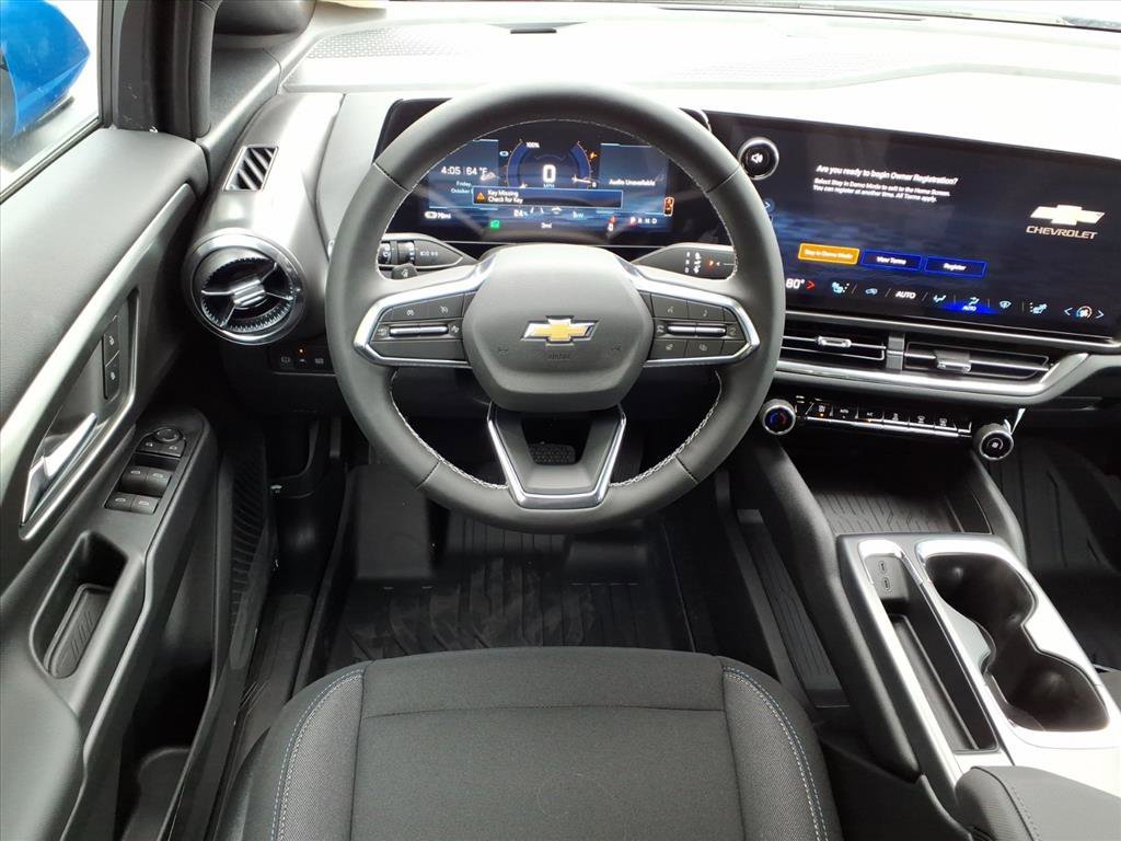 Demo/CTP units may have more mileage than a normal new retail unit. 19" Wheels, 4-Wheel Disc Brakes, 6 Speakers, 6-Speaker Audio System Feature, ABS brakes, Air Conditioning, Alloy wheels, AM/FM radio: SiriusXM with 360L, Auto High-beam Headlights, Automatic temperature control, Brake assist, Bumpers: body-color, Cloth Seat Trim, Compass, Delay-off headlights, Driver 6-Way Manual Seat Adjuster, Driver door bin, Dual front impact airbags, Dual front side impact airbags, Electronic Stability Control, Emergency communication system: OnStar and Chevrolet connected services capable, Four wheel independent suspension, Front anti-roll bar, Front Bucket Seats, Front Center Armrest, Front Passenger 4-Way Manual Seat Adjuster, Front reading lights, Fully automatic headlights, Illuminated entry, Knee airbag, Low tire pressure warning, Navigation system: Google built-in compatibility (select service plan required, terms and limitations apply), Occupant sensing airbag, Outside temperature display, Overhead airbag, Overhead console, Panic alarm, Passenger door bin, Power door mirrors, Power steering, Power windows, Radio: 17.7" Diagonal Advanced Color LCD Display, Rear anti-roll bar, Rear reading lights, Rear seat center armrest, Rear window defroster, Rear window wiper, Remote keyless entry, Security system, SiriusXM with 360L Trial Subscription, Speed control, Split folding rear seat, Spoiler, Steering wheel mounted audio controls, Telescoping steering wheel, Tilt steering wheel, Traction control, Trip computer, Turn signal indicator mirrors, and Variably intermittent wipers. Factory MSRP: $39,390. $5,000 off MSRP! Riptide Blue Metallic 2026 Chevrolet Equinox EV LT LT 1-Speed Automatic. We have our own aftermarket company that offers a wide variety of accessories.