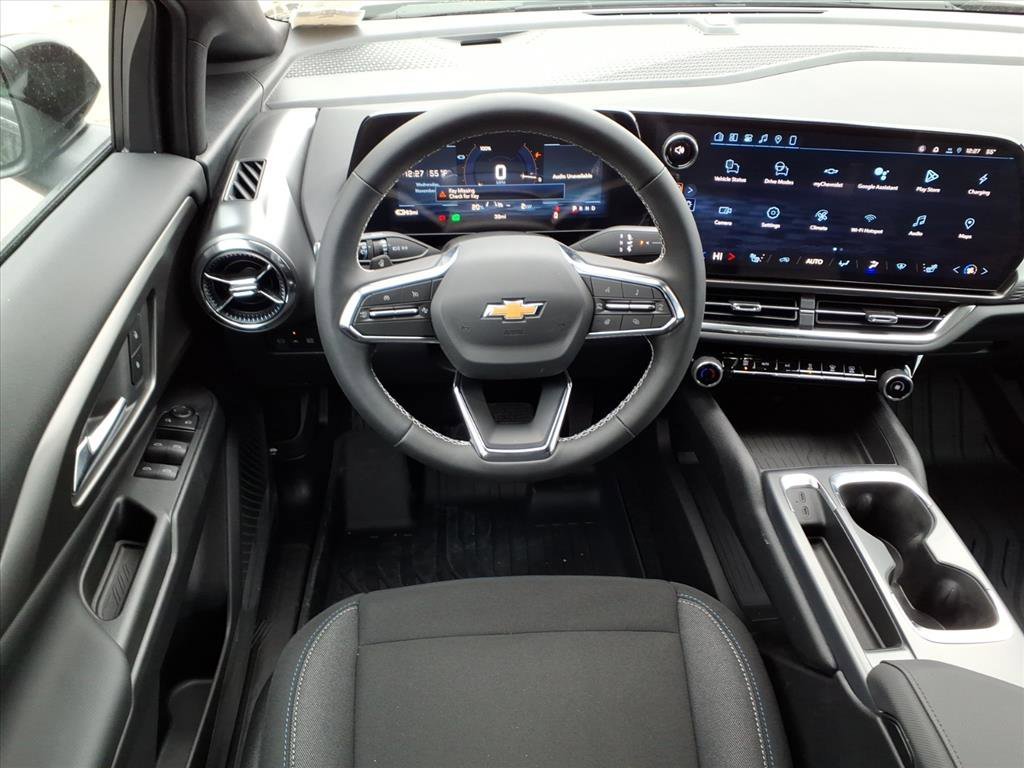 Demo/CTP units may have more mileage than a normal new retail unit. Active Safety Package 2 (Enhanced Traffic Sign Recognition, HD Surround Vision, and Rear Pedestrian Alert), All-Weather Liner Package (All-Weather Cargo Area Liner and Contoured All-Weather Floor Liners), Comfort Package (Driver 8-Way Power Seat Adjuster, Heated Automatic Steering Wheel, Heated Driver and Front Passenger Seats Cushion and Seatback, Power Driver Lumbar Control, and Round Bottom Wrapped Steering Wheel), LT 1 Package, Preferred Equipment Group 2LT, 19" Wheels, 4-Wheel Disc Brakes, 6 Speakers, 6-Speaker Audio System Feature, ABS brakes, Air Conditioning, Alloy wheels, AM/FM radio: SiriusXM with 360L, Auto High-beam Headlights, Automatic temperature control, Brake assist, Bumpers: body-color, Cargo Security Shade, Cloth Seat Trim, Compass, Delay-off headlights, Driver 6-Way Manual Seat Adjuster, Driver door bin, Dual front impact airbags, Dual front side impact airbags, Dual Motor All-Wheel Drive (AWD), Electric Drive Unit, Electronic Stability Control, Emergency communication system: OnStar and Chevrolet connected services capable, Four wheel independent suspension, Front anti-roll bar, Front Bucket Seats, Front Center Armrest, Front Electric AWD Propulsion, Front Passenger 4-Way Manual Seat Adjuster, Front reading lights, Fully automatic headlights, Illuminated entry, Knee airbag, Low tire pressure warning, NACS DC Adapter, Navigation system: Google built-in compatibility (select service plan required, terms and limitations apply), Occupant sensing airbag, Outside temperature display, Overhead airbag, Overhead console, Panic alarm, Passenger door bin, Power door mirrors, Power steering, Power windows, Radio: 17.7" Diagonal Advanced Color LCD Display, Rear anti-roll bar, Rear reading lights, Rear seat center armrest, Rear window defroster, Rear window wiper, Remote keyless entry, Security system, SiriusXM with 360L Trial Subscription, Speed control, Split folding rear seat, Spoiler, Steering wheel mounted audio controls, Telescoping steering wheel, Tilt steering wheel, Traction control, Trip computer, Turn signal indicator mirrors.