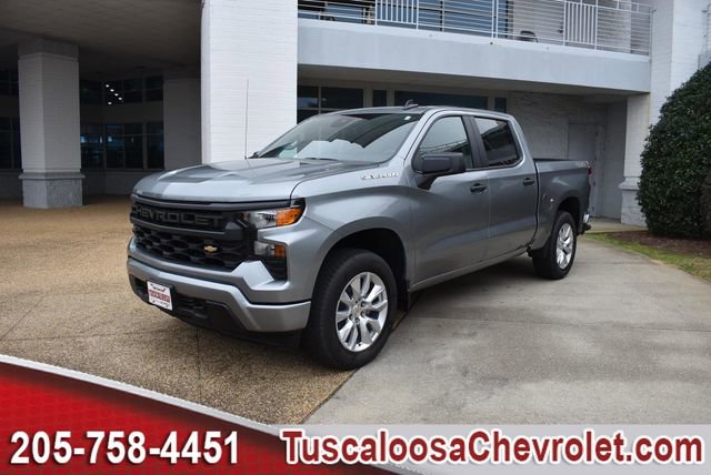 The 2026 Chevrolet Silverado 1500 Custom offers a TurboMax engine paired with an 8-speed automatic transmission. This truck features a Sterling Gray Metallic exterior and a Jet Black interior. The vehicle is equipped with advanced safety and technology features, including AWD, Android Auto, Apple CarPlay, and a Chevrolet Infotainment 3 System with a 7" color touchscreen. The Silverado 1500 Custom is designed for both comfort and capability, providing a spacious Crew Cab and a range of optional features for towing and off-road driving.