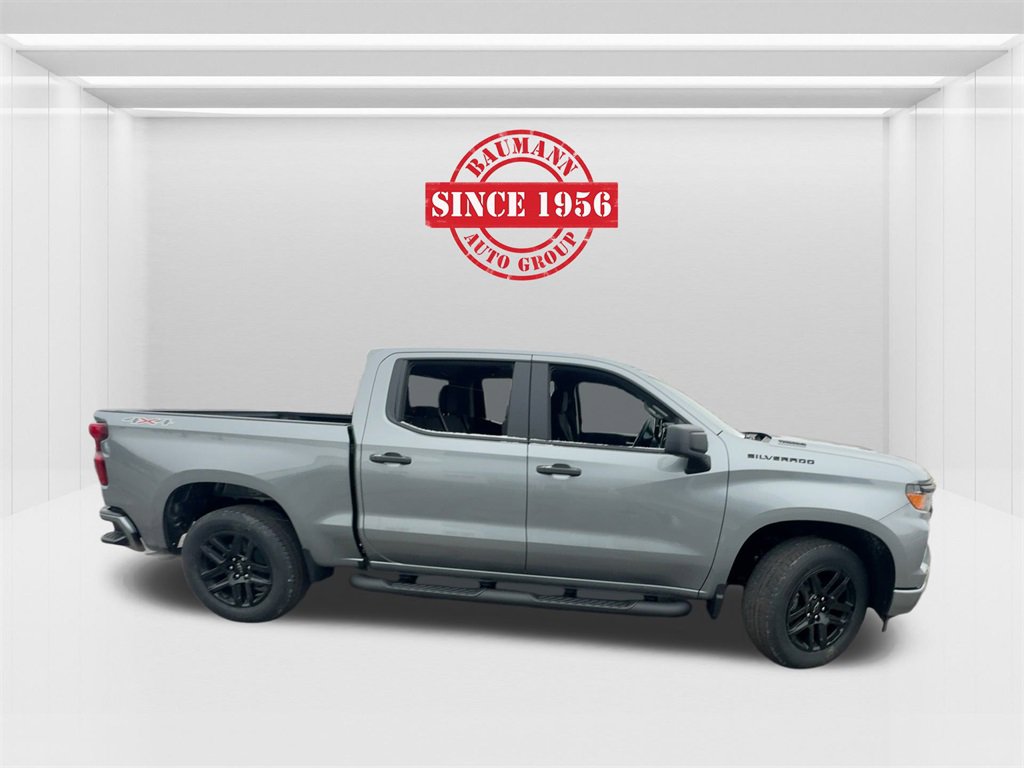 Sterling Gray Metallic 2026 Chevrolet Silverado 1500 Custom 2.7L I4 Turbocharged DOHC 16V LEV3-SULEV30 310hp 4D Crew Cab 4WD 8-Speed Automatic.