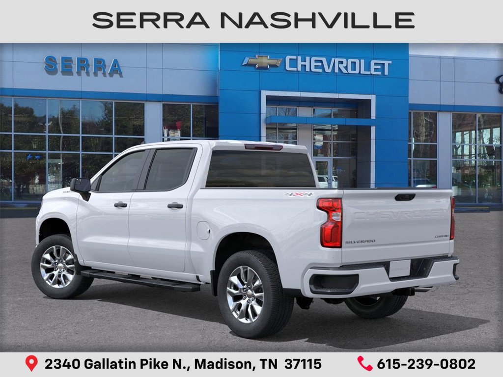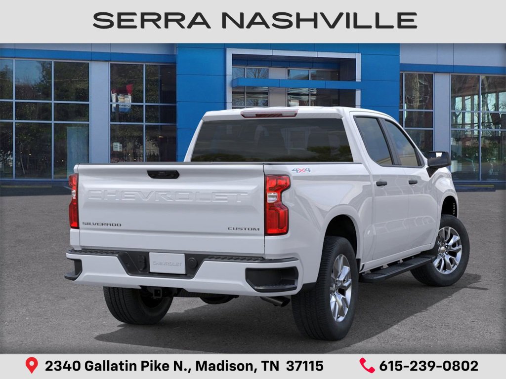2026 Chevrolet Silverado 1500 Custom For sale at Serra Chevrolet Nashville - Serra Nashville has the largest selection of the new Chevrolet Silverado 1500 in Nashville. This vehicle is Summit White and well equipped with Custom Convenience Package (Electric Rear-Window Defogger, EZ Lift Power Lock & Release Tailgate, LED Cargo Area Lighting, Remote Vehicle Starter System, and Theft Deterrent System (Unauthorized Entry)), Custom Value Package, High Capacity Suspension Package, Trailering Package (Hitch Guidance), 8-Speed Automatic, 4WD, Jet Black Cloth, 10-Way Power Driver Seat w/Lumbar, 120-Volt Bed Mounted Power Outlet, 120-Volt Interior Power Outlet, 3.42 Rear Axle Ratio, 3.5 Monochromatic Display Driver Info Center, 4-Wheel Disc Brakes, 40/20/40 Front Split-Bench Seat, 6 Speakers, 6-Speaker Audio System, ABS brakes, Air Conditioning, Alloy wheels, AM/FM radio: SiriusXM, Apple CarPlay/Android Auto, Auto High-beam Headlights, Automatic Emergency Braking, Bluetooth For Phone, Brake assist, Bumpers: body-color, Cloth Seat Trim, Color-Keyed Carpeting Floor Covering, Compassion, Deep-tinted Glass Glass Glass Glass Glass Glass Glass and other color.