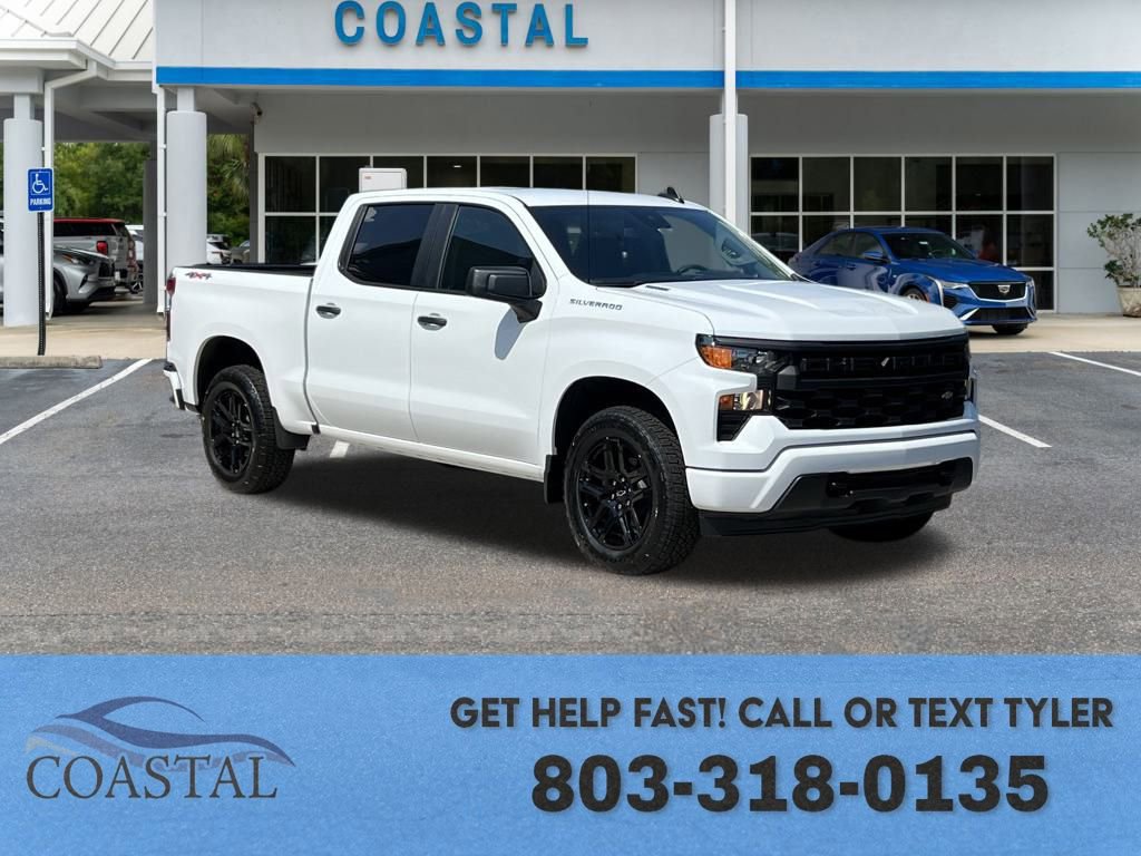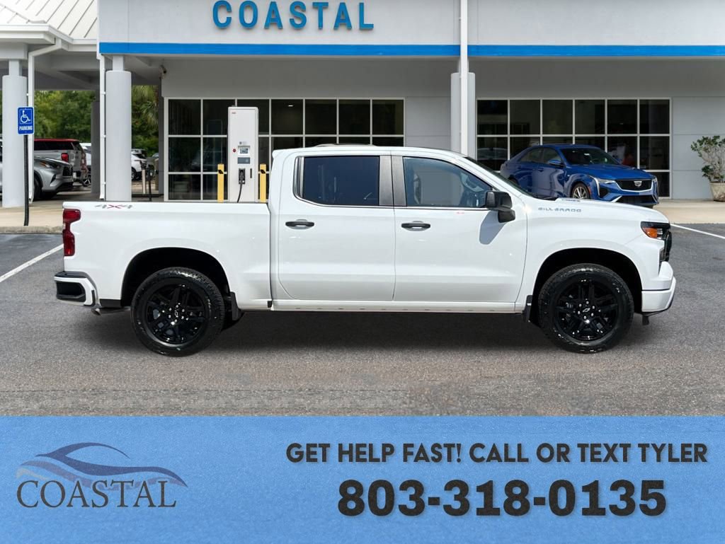 Summit White 2026 Chevrolet Silverado 1500 Custom 4WD 8-Speed Automatic 2.7L I4 Turbocharged DOHC 16V LEV3-SULEV30 310hp 8-Speed Automatic, 4WD, Black Cloth. Recent Arrival! Interested? Text or Call Tyler: 803-318-0135.