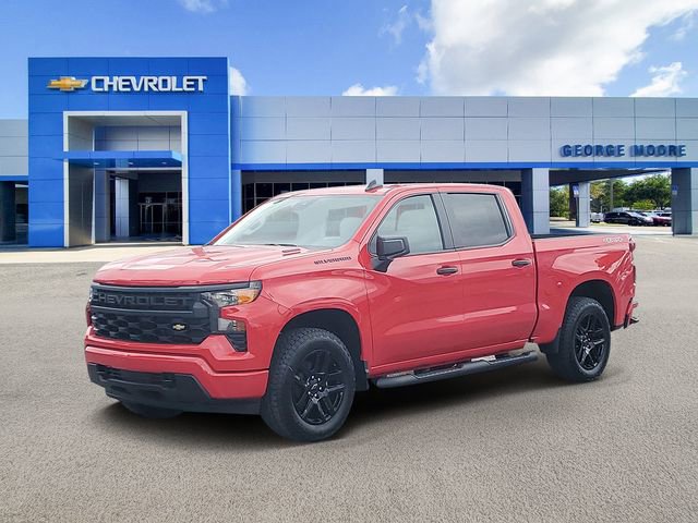Red 2026 Chevrolet Silverado 1500 Custom 4WD 8-Speed Automatic 2.7L I4 Turbocharged DOHC 16V LEV3-SULEV30 310hp 8-Speed Automatic, 4WD, Black Cloth, Black Cloth, Black Cloth, Black Cloth, Black Cloth, Black Name Plates, Black Chrome Exhaust Tip, Black Chrome Exhaust Tip, Black Cloth, Black Cloth, and White.