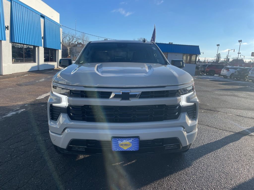 White Sands 2026 Chevrolet Silverado 1500 RST 4WD 10-Speed Automatic EcoTec3 5.3L V8 10-Speed Automatic, 4WD, Black Leather, 10-Way Power Driver Seat w/Lumbar, 12.3 Multicolor Reconfigurable Digital Display, 120-Volt Bed Mounted Power Outlet, 120-Volt Interior Power Outlet, 170 Amp Alternator, 2 USB Data Ports, 220 Amp Alternator, 3.23 Rear Axle Ratio, 4-Wheel Disc Brakes, 40/20/40 Front Split-Bench Seat, 6 Speakers, 6-Speaker Audio System, ABS brakes, Air Conditioning, All Star Edition Plus, All-Star Edition, All-Weather Floor Liner (LPO) (AAK), Alloy wheels, AM/FM radio: SiriusXM with 360L, Apple CarPlay/Android Auto, Auto High-beam Headlights, Auto-Locking Rear Differential, Automatic Emergency Braking, Automatic temperature control, Auxiliary External Transmission Oil Cooler, Bluetooth For Phone, Brake assist, Bumpers: body-color, Chevytec Spray-On Black Bedliner, Cloth Seat Trim, Color-Keyed Carpeting Floor Covering, Compass, Convenience Package, Convenience Package II, Dark Appearance Package, Deep-Tinted Glass, Delay-off headlights, Driver door bin, Driver vanity mirror, Dual Exhaust w/Polished Outlets, Dual front impact airbags, Dual front side impact airbags, Dual Rear USB Ports (Charge Only), Dual-Zone Automatic Climate Control, Electric Rear-Window Defogger, Electronic Cruise Control, Electronic Stability Control, Electronic Transmission Range Selector Shifter, Emergency communication system: OnStar, External Engine Oil Cooler, EZ Lift Power Lock & Release Tailgate, Floor Mounted Center Console, Following Distance Indicator, Forward Collision Alert, Front anti-roll bar, Front Bucket Seats, Front Center Armrest w/Storage, Front dual zone A/C, Front fog lights, Front Frame-Mounted Black Recovery Hooks, Front LED Fog Lamps, Front License Plate Kit, Front Pedestrian Braking, Front reading lights, Front Rubberized Vinyl Floor Mats, Front wheel independent suspension, Fully automatic headlights, HD Rear Vision Camera, Heated door mirrors, Heated Driver & Front Outboard Passenger Seats, Heated front seats, Heated Power-Adjustable Outside Mirrors, Heated Steering Wheel, Heated steering wheel, Heavy-Duty Air Filter, High Capacity Suspension Package, High Gloss Black Mirror Caps, Hill Descent Control, Hitch Guidance, Hitch Guidance w/Hitch View, Illuminated entry, In-Vehicle Trailering System App, Inside Rear-View Mirror w/Tilt, Integrated Trailer Brake Controller, IntelliBeam Automatic High Beam On/Off, Keyless Open & Start, Lane Keep Assist w/Lane Departure Warning, Leather Package, Leather-Appointed Front Seat Trim.