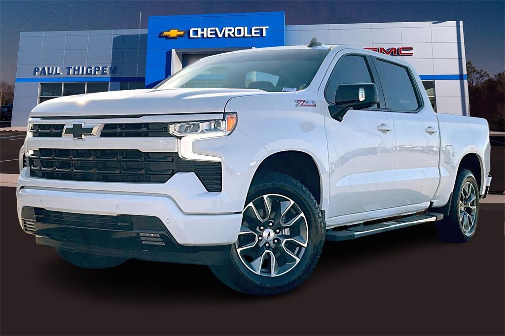 Paul Thigpen Chevrolet GMC has New car Preped this 2026 Chevrolet Silverado 1500 and comes with the following All Star Edition Plus (Wheels: 20 x 9 Painted Aluminum), Convenience Package (10-Way Power Driver Seat w/Lumbar, 120-Volt Bed Mounted Power Outlet, 120-Volt Interior Power Outlet, Dual Rear USB Ports (Charge Only), Dual-Zone Automatic Climate Control, Electric Rear-Window Defogger, Heated Driver & Front Outboard Passenger Seats, Heated Steering Wheel, Keyless Open & Start, LED Cargo Area Lighting, Manual Tilt/Telescoping Steering Column, Remote Vehicle Starter System, Theft Deterrent System (Unauthorized Entry), and Wrapped Steering Wheel), Convenience Package II (Hitch Guidance w/Hitch View, In-Vehicle Trailering System App, Power Sliding Rear Window w/Rear Defogger, Premium Bose 7-Speaker Sound System, and Universal Home Remote), Leather Package (Leather-Appointed Front Seat Trim), Preferred Equipment Group 1SP (12.3 Multicolor Reconfigurable Digital Display, 6-Speaker Audio System, All-Star Edition, Auto-Locking Rear Differential, Bluetooth For Phone, Color-Keyed Carpeting Floor Covering, Deep-Tinted Glass, Electronic Cruise Control, EZ Lift Power Lock & Release Tailgate, Front Frame-Mounted Black Recovery Hooks, Front LED Fog Lamps, Front Rubberized Vinyl Floor Mats, HD Rear Vision Camera, Heated Power-Adjustable Outside Mirrors, High Gloss Black Mirror Caps, Inside Rear-View Mirror w/Tilt, Integrated Trailer Brake Controller, OnStar Services Capable, Power Front Windows w/Driver Express Up/Down, Power Front Windows w/Passenger Express Down, Power Rear Windows w/Express Down, Rear 60/40 Folding Bench Seat (Folds Up), Rear Rubberized-Vinyl Floor Mats, SiriusXM w/360L Trial Subscription, Standard Tailgate, Steering Wheel Audio Controls, Teen Driver, Tire Pressure Monitoring System, and Wi-Fi Hot Spot Capable), Protection Package (Chevytec Spray-On Black Bedliner and Rear Wheelhouse Liners), RST All Star Premium Package (Adaptive Cruise Control), Safety Package (HD Surround Vision, Perimeter Lighting, Rear Cross Traffic Braking, Rear Pedestrian Alert, Trailer Camera Provisions, Trailer Side Blind Zone Alert, and Ultrasonic Front & Rear Park Assist), Standard Suspension Package, Trailering Package (Hitch Guidance), Up-Level Rear Seat w/Storage Package, Z71 Off-Road & Protection Package (All-Weather Floor Liner), Z71 Off-Road Package (Dual Exhaust w/Polished Outlets, Heavy-Duty Air Filter, Hill Descent Control, and Off-Road Suspension).