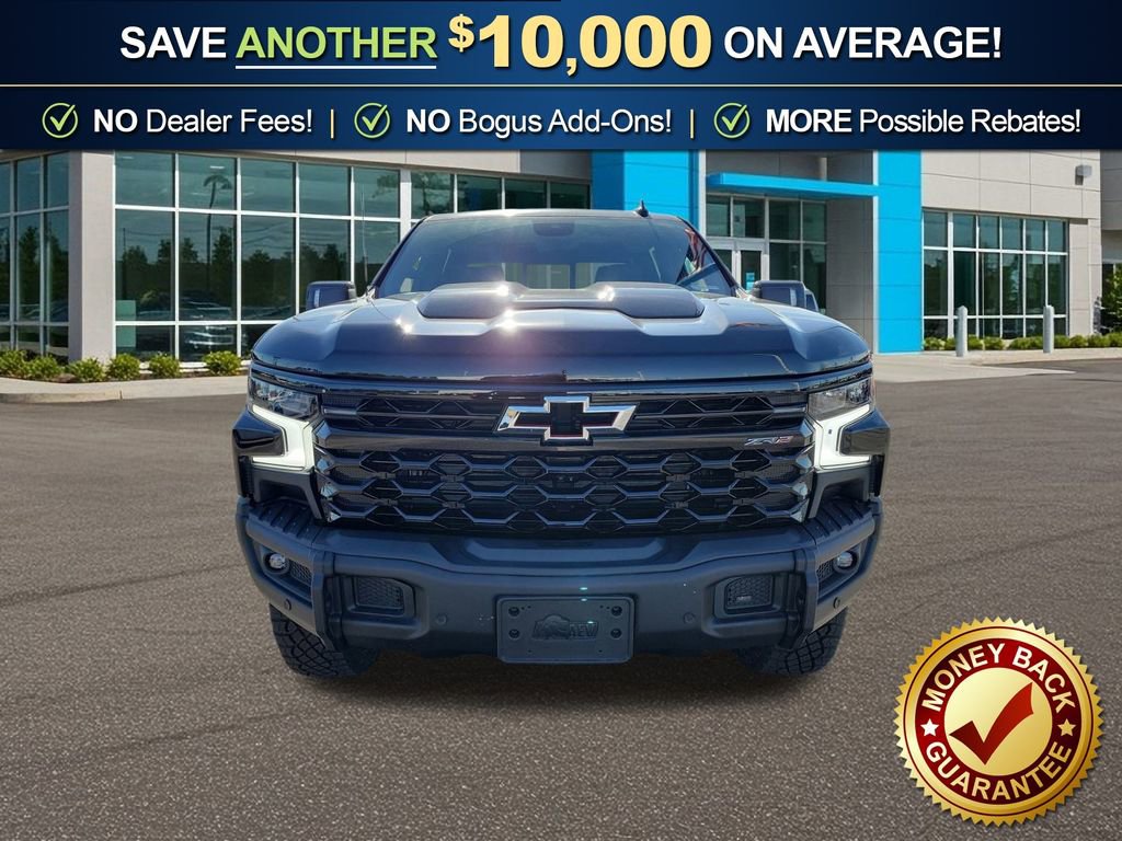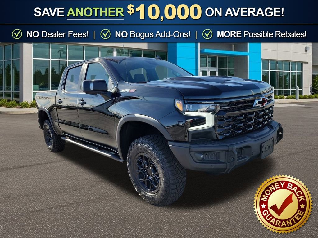 Dealer Discount of $6,271 off MSRP Black 2026 Chevrolet Silverado 1500 ZR2 NCT 4WD 10-Speed Automatic EcoTec3 6.2L V8 10-Speed Automatic, 4WD, Jet Black/Graystone Leather, 10-Way Power Driver Seat with Lumbar, 10-Way Power Passenger Seat Adjuster with Lumbar, 12.3 Multicolor Reconfigurable Digital Display, 120-Volt Bed Mounted Power Outlet, 120-Volt Interior Power Outlet, 15 Diagonal Multicolor Head-Up Display, 170 Amp Alternator, 2 USB Data Ports, 220 Amp Alternator, 2nd Row Heated Outboard Seats, 3.23 Rear Axle Ratio, 4-Wheel Disc Brakes, 7 Speakers, 850 Cold-Cranking Amps Heavy-Duty Battery, ABS brakes, Adaptive Cruise Control, AEV Front Bumper, AEV Fuel Tank Skid Plate, AEV Rear Bumper, Air Conditioning, All-Weather AEV Floor Liners (LPO), All-Weather Floor Liner, Alloy wheels, AM/FM radio: SiriusXM with 360L, Apple CarPlay/Android Auto, Auto High-beam Headlights, Auto-dimming door mirrors, Auto-dimming Rear-View mirror, Automatic Emergency Braking, Automatic temperature control, Auxiliary External Transmission Oil Cooler, Bed View Camera, Block heater, Bluetooth For Phone, Brake assist, Chevytec Spray-on Black Bedliner, Color-Keyed Carpeting Floor Covering, Compass, Deep-Tinted Glass, Delay-off headlights, Driver door bin, Driver Memory, Driver vanity mirror, Dual Active Exhaust, Dual Exhaust, Dual front impact airbags, Dual front side impact airbags, Dual Rear USB Ports (charge Only), Electric Rear-Window Defogger, Electronic Stability Control, Electronic Transmission Range Selector Shifter and the vehicle.
