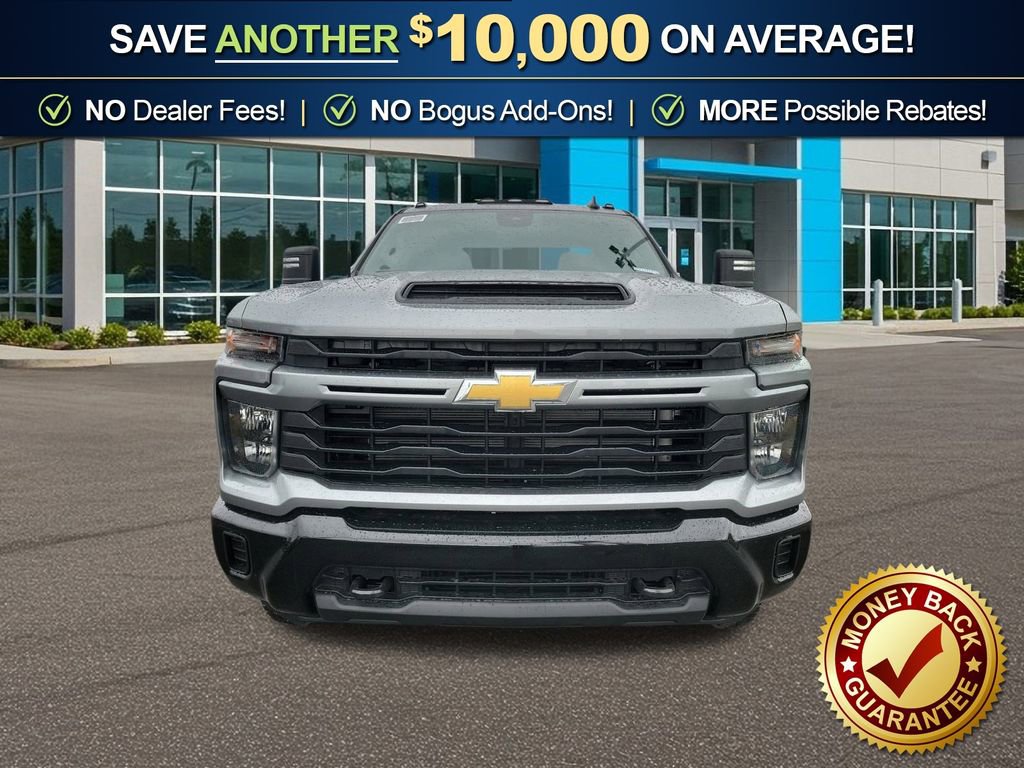 Dealer Discount of $3,302 off MSRP Sterling Gray Metallic 2026 Chevrolet Silverado 2500HD Custom NCT 4WD 10-Speed Automatic 6.6L V8 10-Speed Automatic, 4WD, Jet Black Cloth, 10-Way Power Driver Seat Adjuster with Lumbar, 120-Volt Bed Mounted Power Outlet, 120-Volt Interior Power Outlet, 170 Amp Alternator, 2-Speed Electronic Shift Transfer Case, 3.5 Diagonal Monochromatic Display DIC, 3.73 Rear Axle Ratio, 4-Wheel Disc Brakes, 4 Round Black Assist Steps, 6 Speakers, 6-Speaker Audio System, 720 Cold-Cranking Amps Heavy-Duty Battery, ABS brakes, Air Conditioning, Alloy wheels, AM/FM radio: SiriusXM with 360L, Apple CarPlay/Android Auto, Auto High-beam Headlights, Black Mirror Caps, Bluetooth For Phone, Brake assist, Chevrolet Connected Access Capable, Cloth Seat Trim, Color-Keyed Carpeting Floor Covering, Compass, Custom Convenience Package, Deep-Tinted Glass, Delay-off headlights, Driver door bin, Dual front impact airbags, Dual front side impact airbags, Dual Rear USB Ports (charge Only), Durabed Pickup Bed, Electric Rear-Window Defogger, Electronic Cruise Control with Set and Resume Speed, Electronic Stability Control, Emergency communication system: OnStar, EZ Lift Power Lock and Release Tailgate, Front 40/20/40 Split-Bench Seats with Lockable Storage, Front anti-roll bar, Front Center Armrest w/Storage, Front reading lights, Front wheel independent suspension, Fully automatic headlights, HD Rear Vision Camera, Heated door mirrors, Heated Vertical Trailering Mirrors, Hill Descent Control, Illuminated entry, LED Cargo Area Lighting, LED Smoked Amber Roof Marker Lamps, Locking Tailgate, Manual Tilt-Wheel Steering Column, Multi-Flex Tailgate, Occupant sensing airbag, Off-Road Suspension, OnStar Services Capable, Outside temperature display, Overhead airbag, Overhead console, Panic alarm, Passenger door bin, Passenger vanity mirror, Power Door Locks and options.