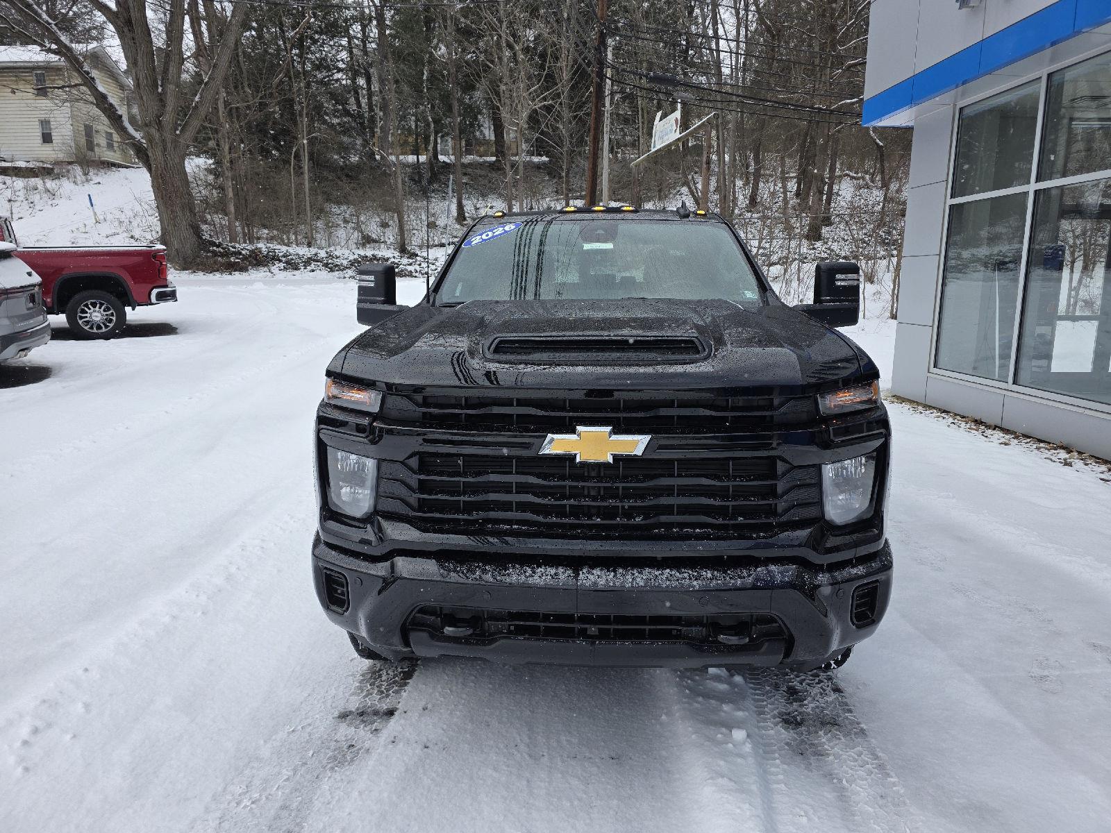 This New 2026 Chevrolet Silverado 2500HD Custom, is Black in color with a Jet Black interior. Forward collision mitigation is always looking ahead. Pedestrians don't always stop, look, and listen, but with Pedestrian Impact Prevention, your vehicle is equipped to better see them and avoid them. The rear camera helps you see obstacles and hazards you otherwise couldn't by showing enhanced images of what is behind you. Apple CarPlay/Android Auto smart device wireless mirroring Mobile hotspot - WiFi on the fly. Connect your devices to the Internet through your vehicle's private mobile hotspot and take the internet wherever your journey takes you, without eating up your data allowance.