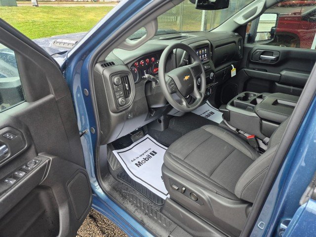 The 2026 Chevrolet Silverado 2500 HD Custom offers a powerful 6.6L Duramax Turbo-Diesel V8 engine, paired with a 10-speed automatic transmission. This heavy-duty truck features a Lakeshore Blue Metallic exterior and Jet Black interior. It is equipped with advanced safety and technology features, including Chevrolet Infotainment 3 System with a 7" color touchscreen, Apple CarPlay and Android Auto, and a suite of driver assistance systems. The Silverado 2500 HD Custom is designed for both work and comfort, providing a smooth ride and impressive towing capability.