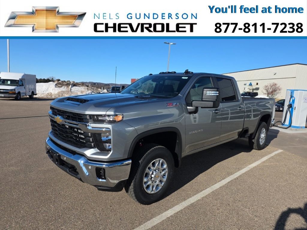 Sterling Gray Metallic 2026 Chevrolet Silverado 3500HD LT 4WD 10-Speed Automatic Duramax 6.6L V8 Turbodiesel 10-Speed Automatic, 4WD, Jet Black Cloth. Nels Gunderson Chevrolet is excited to offer this dependable 2026 Chevrolet Silverado 3500HD LT in Sterling Gray Metallic, beautifully equipped with All Star Edition, Cloth Rear Seat with Storage Package, Convenience Package (10-Way Power Driver Seat Adjuster with Lumbar, Dual-Zone Automatic Climate Control, Front LED Fog Lamps, LED Cargo Area Lighting, and Manual Tilt-Wheel/Telescoping Steering Column), Convenience Package II (120-Volt Bed Mounted Power Outlet, Hitch Guidance with Hitch View, in-Vehicle Trailering App System, Power Sliding Rear Window with Defogger, and Universal Home Remote), Gooseneck/5th Wheel Prep Package (Chevytec Spray-on Black Bedliner), Heat Package (Heated Driver and Front Outboard Passenger Seats and Heated Steering Wheel), Hitch Package, Preferred Equipment Group 1LT (170 Amp Alternator, 2-Speed Electronic Shift Transfer Case, 4-Way Manual Driver Seat Adjuster, Black Mirror Caps, Bluetooth For Phone, Chevrolet Connected Access Capable, Color-Keyed Carpeting Floor Covering, Compass Located in Instrument Cluster, Deep-Tinted Glass, Durabed Pickup Bed, EZ Lift Power Lock and Release Tailgate, Front Rubberized Vinyl Floor Mats, Halogen Reflector Headlamps, HD Rear Vision Camera, Keyless Open and Start, OnStar Services Capable, Outside Power-Adjustable Mirrors, Power Door Locks, Power Front Windows with Driver Express Up/Down, Power Front Windows with Passenger Express Down, Power Rear Windows with Express Down, Push Button Start, Rear 60/40 Folding Bench Seat (folds Up), Rear Rubberized-Vinyl Floor Mats, SiriusXM with 360L Trial Subscription, Standard Tailgate, Steering Wheel Audio Controls, Steering Wheel Mounted Electronic Cruise Control, Wi-Fi Hotspot Capable, and Wrapped Steering Wheel), Remote Start Package (Electric Rear-Window Defogger, Remote Vehicle Starter System, and Unauthorized Entry Theft-Deterrent System), Safety Package (Bed View Camera with Two Trailer Camera Provisions, HD Surround Vision, Rear Cross Traffic Alert, Trailer Camera Provisions, Trailer Side Blind Zone Alert, and Ultrasonic Front and Rear Park Assist), Snow Plow Prep/Camper Package (220 Amp Alternator), Suspension Package.