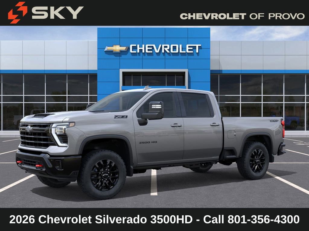 New Price! Experience the new Chevrolet Silverado 3500HD, available now at Sky Chevrolet of Provo! With bold design, advanced technology, and dependable performance, Chevrolet makes every mile more exciting. From Utah Valley’s city streets to mountain canyon drives, the Silverado 3500HD is built to handle it all with confidence. Call 801-356-4300 today to schedule your test drive and see what makes it stand out! Sterling Gray Metallic 2026 Chevrolet Silverado 3500HD LTZ 4WD 10-Speed Automatic Duramax 6.6L V8 Turbodiesel 10-Speed Automatic, 4WD, Jet Black Leather. Recent Arrival! Price includes: $1000 - Chevrolet Consumer Cash Program $1,000 Down Payment Assistance. Must Finance with GM Financial. $1,500 trade in allowance program for customers that own a 2018 or newer passenger car or truck with less than 80,000 miles and trade in their vehicle towards the purchase of a new 2025-2026 New Chevrolet. Some restrictions may apply. Contact dealer for details. Sky Chevrolet of Provo is dedicated to your satisfaction.