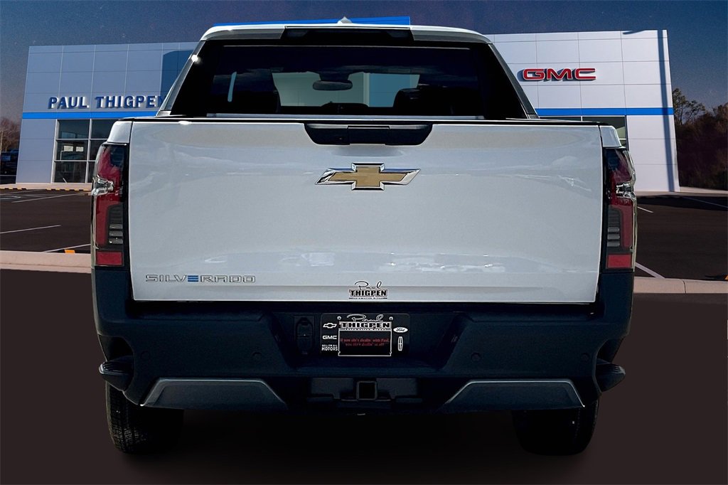 Paul Thigpen Chevrolet GMC has New car Preped this 2026 Chevrolet Silverado EV and comes with the following Front License Plate Bracket Mounting Package, Preferred Equipment Group 2LT (Standard Range Battery Pack), 11.63 Axle Ratio, 4-Wheel Disc Brakes, 4-Wheel Independent Suspension, 6 Speakers, 6-Speaker Audio System Feature, 8-Way Power Driver Seat Adjuster, ABS brakes, Air Conditioning, Alloy wheels, AM/FM radio: SiriusXM with 360L, Auto High-beam Headlights, Auto-dimming Rear-View mirror, Automatic temperature control, Black Chevytec Spray-on Bedliner, Brake assist, Delay-off headlights, Driver 2-Way Power Lumbar Seat Adjuster, Driver door bin, Driver vanity mirror, Dual front impact airbags, Dual front side impact airbags, Electronic Stability Control, Emergency communication system: OnStar, Evotex Seat Trim, Four wheel independent suspension, Front anti-roll bar, Front Bucket Seats, Front Center Armrest w/Storage, Front dual zone A/C, Front Passenger 4-Way Manual Seat Adjuster, Front reading lights, Fully automatic headlights, Garage door transmitter, Heated door mirrors, Heated Front Driver and Passenger Seats, Heated front seats, Heated steering wheel, Low tire pressure warning, Navigation System, Occupant sensing airbag, Outside temperature display, Overhead airbag, Overhead console, Panic alarm, Passenger door bin, Passenger vanity mirror, Power door mirrors, Power driver seat, Power steering, Power windows, Radio data system, Radio: 17.7 Diagonal Advanced Color LCD Display, Rain sensing wipers, Rear reading lights, Rear step bumper, Rear window defroster, Remote keyless entry, Security system, SiriusXM with 360L Trial Subscription, Speed control, Speed-sensing steering, Split folding rear seat, Sport steering wheel, Steering wheel mounted audio controls, Telescoping steering wheel, Tilt steering wheel, Traction control, Trip computer, Variably intermittent wipers, and Wheels: 18 x 8.5 High Gloss Black Painted Aluminum.