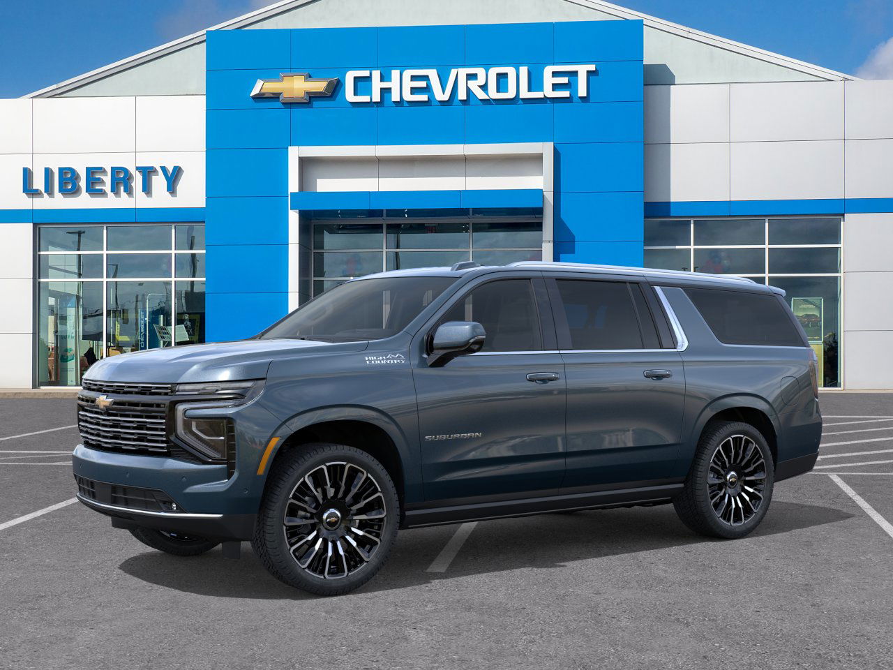 In Transit. New 2026 Chevrolet Suburban High Country. The Suburban offers a smooth ride, advanced safety features, and a spacious interior with seating for up to eight. The new design is bold and aggressive, while the interior provides comfort and convenience for passengers. The vehicle is equipped with a 6.2L V8 engine, advanced trailering technology, and premium features for a luxury driving experience.