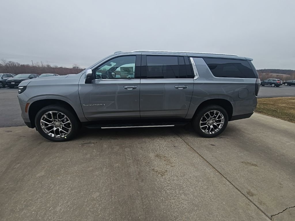 Sterling Gray Metallic 2026 Chevrolet Suburban Premier 4WD. This vehicle features a 3.0L Duramax Turbo Diesel engine and a 10-speed automatic transmission. The vehicle is in its first 6 months of use and is available at the dealership.