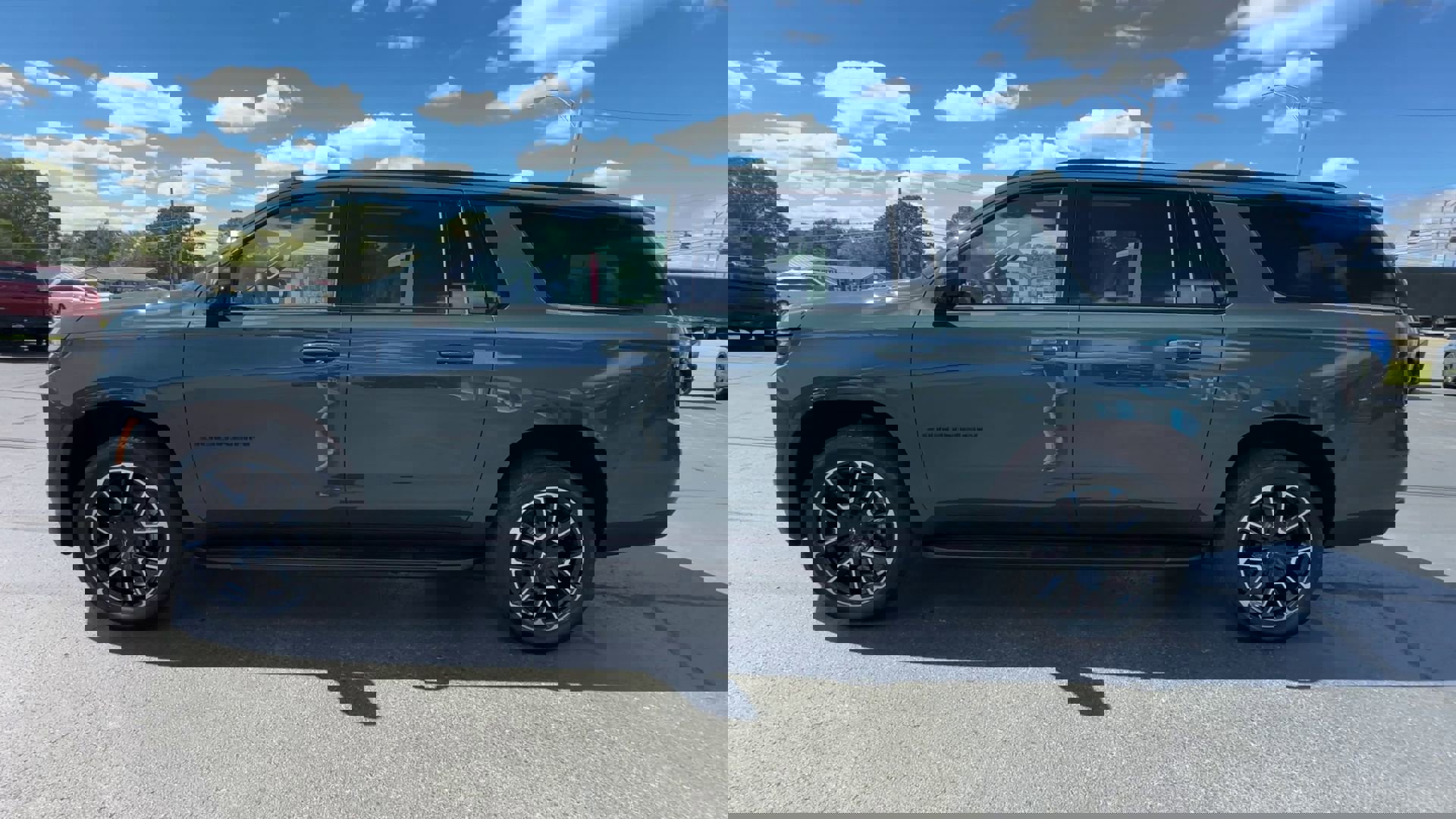 The new 2026 Chevrolet Suburban RST offers a comfortable and comfortable ride for up to 10-9 passengers. The vehicle features a 5.3L V8 engine and a range of advanced safety and technology features. The exterior is Cypress Gray, and the interior is Jet Black with a victory Red/Red color. The vehicle is equipped with Blind Spot Monitor, Moon Roof, Apple CarPlay, etc.