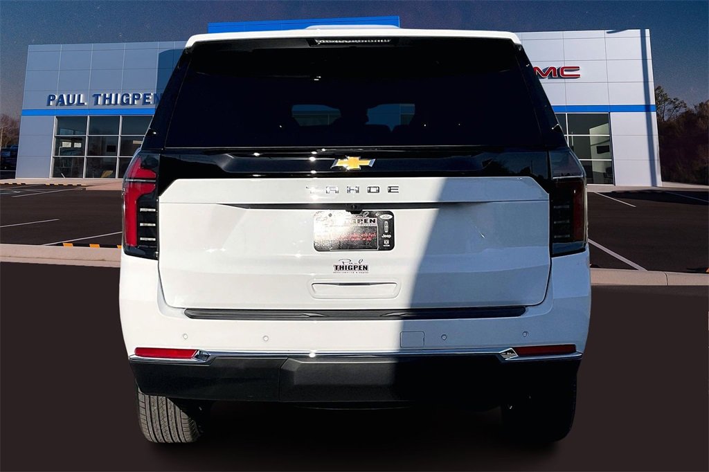 Paul Thigpen Chevrolet GMC has new car prepared this 2026 Chevrolet Tahoe and comes with the following 4WD, cloth, 1st and 2nd row color-keyed carpeted floor mats, 2-way power driver lumbar seat adjuster, 2-way power front passenger lumbar seat adjuster, 3-spoke wrapped steering wheel, 3rd row manual 60/40 split-folding bench seats, 3rd row seats: split-bench, 4-wheel disc brakes, 6 speakers, 6-speaker audio system feature, 6-way power front passenger seat adjuster, 8-way power driver seat adjuster, ABS brakes, air conditioning, alloy wheels, AM/FM radio: SiriusXM with 360L, Apple CarPlay/Android Auto, auto high-beam headlights, automatic temperature control, brake assist, bumpers: body-color, color-keyed carpeting floor covering, compass, delay-off headlights, driver door bin, driver vanity mirror, dual front impact airbags, dual front side impact airbags, electronic stability control, emergency communication system: OnStar and Chevrolet connected services capable, exterior parking camera rear, floor console with storage area, four wheel independent suspension, front anti-roll bar, front bucket seats, front center armrest, front dual zone A/C, front reading lights, frontal driver and outboard passenger airbags, fully automatic headlights, heated door mirrors, illuminated entry, key card, low tire pressure warning, navigation system: Google built-in compatibility (select service plan required, terms and limitations apply), occupant sensing airbag, outside temperature display, overhead airbag, overhead console, panic alarm, passenger door bin, passenger vanity mirror, power door mirrors, power driver seat, power passenger seat, power steering, power windows.