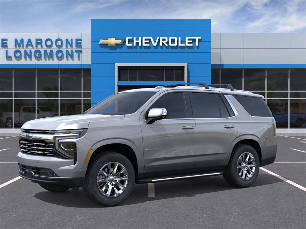 Sterling Gray Metallic 2026 Chevrolet Tahoe Premier 4WD 10-Speed Automatic with Overdrive EcoTec3 5.3L V8 4WD, Jet Black Leather. Proudly serving Longmont, Boulder, Denver, Loveland, Erie, Fort Collins, Thornton, Westminster, Lakewood, Broomfield, Golden, Brighton, and Greeley. Recent Arrival!