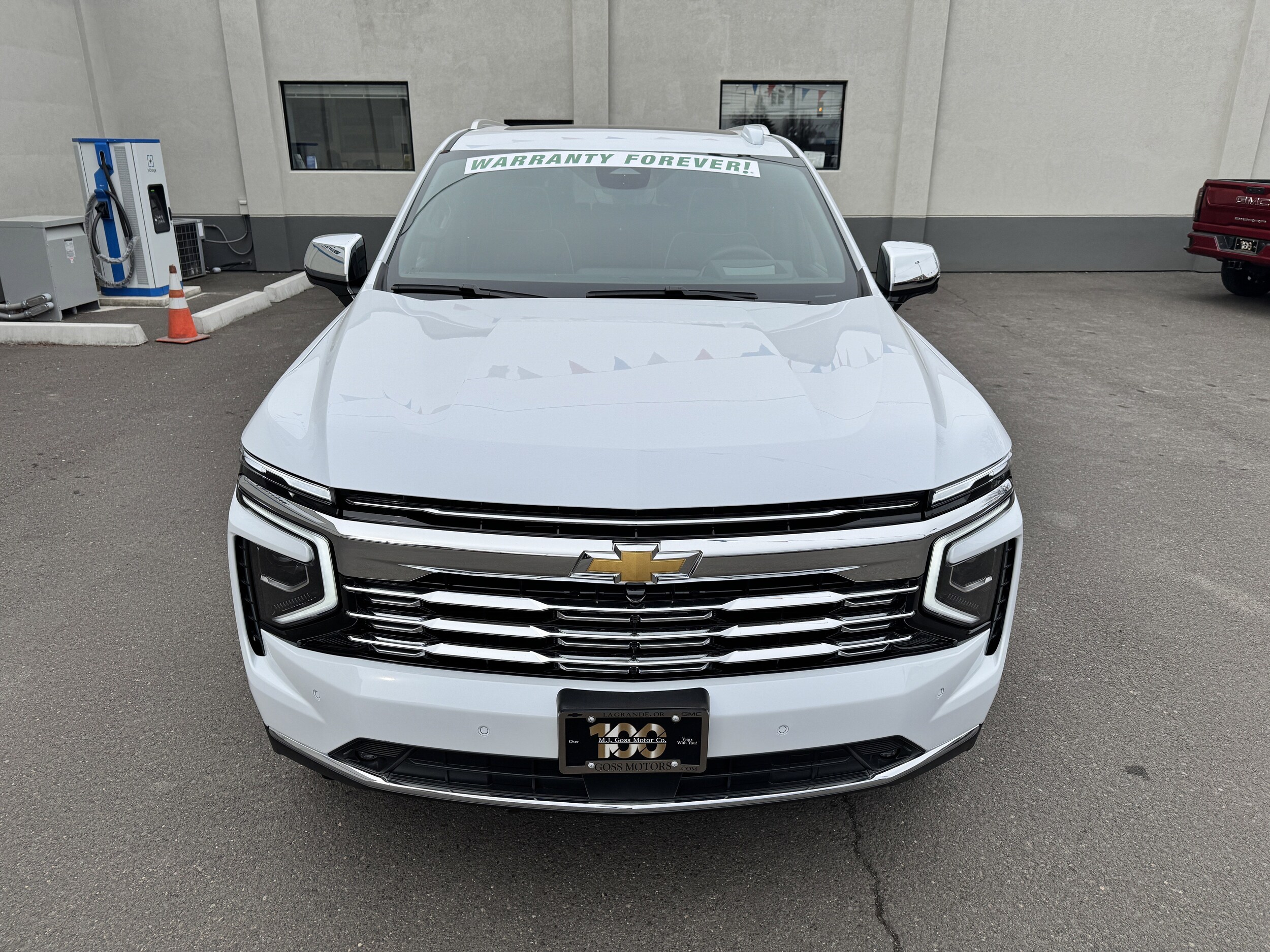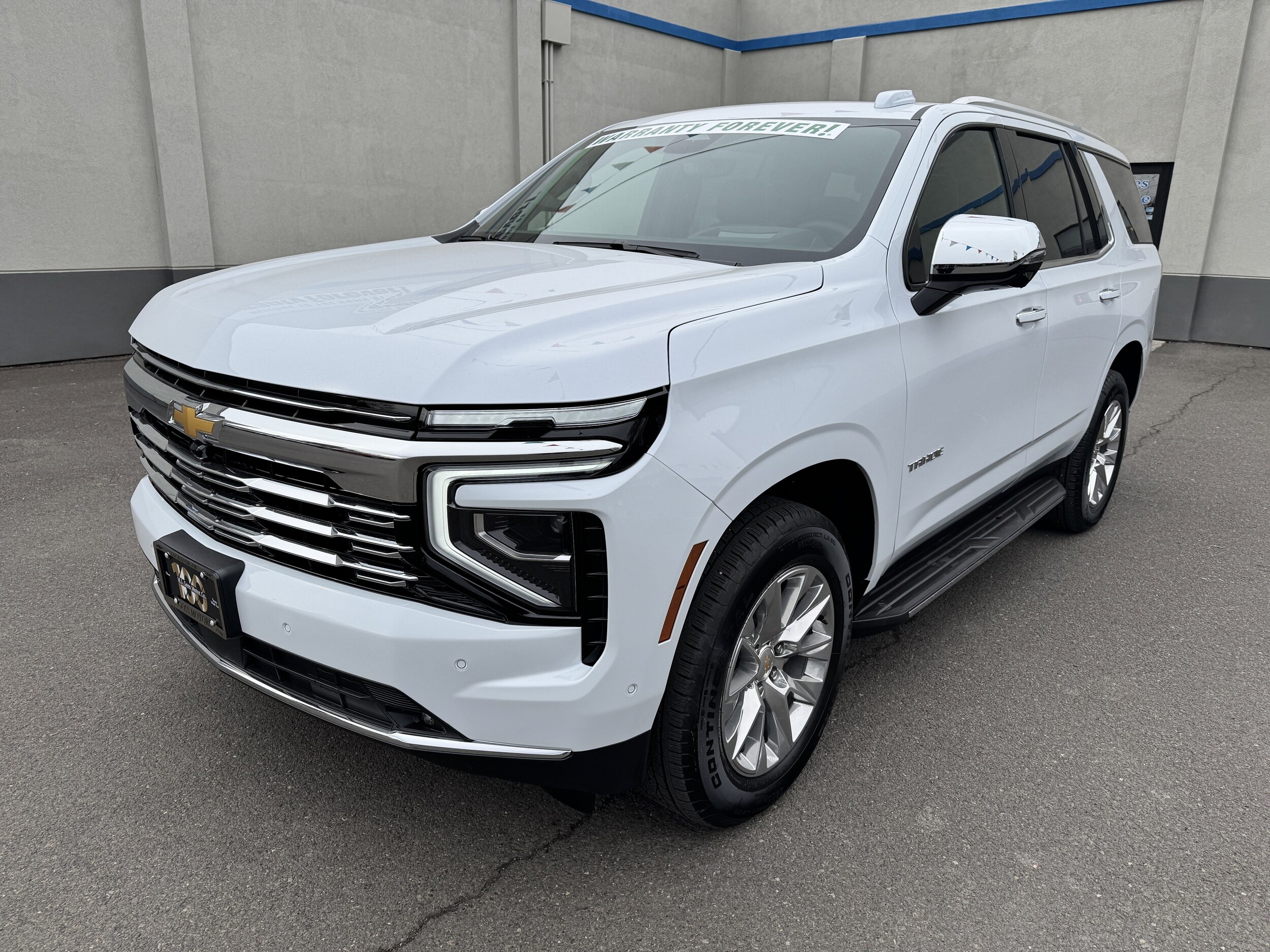 The 2026 Chevrolet Tahoe Premier is a luxurious and accommodating SUV, designed for family comfort and performance. With its Polar White Tricoat exterior and Jet Black interior, it offers a premium driving experience. The Tahoe features advanced technology, including a 17.7" diagonal advanced color LCD display with Google built-in compatibility, Apple CarPlay, Android Auto, and a Bose CenterPoint Surround 10-speaker audio system. For comfort, there are heated and ventilated front seats, heated second row outboard seats, a heated steering wheel, and a panoramic power sunroof. Safety is enhanced with features like Head-Up Display, HD Surround Vision, Lane Keep Assist with Lane Departure Warning, and Rear Cross Traffic Braking. The Tahoe is capable of towing up to 7,700 lbs and offers a smooth ride with Magnetic Ride Control.