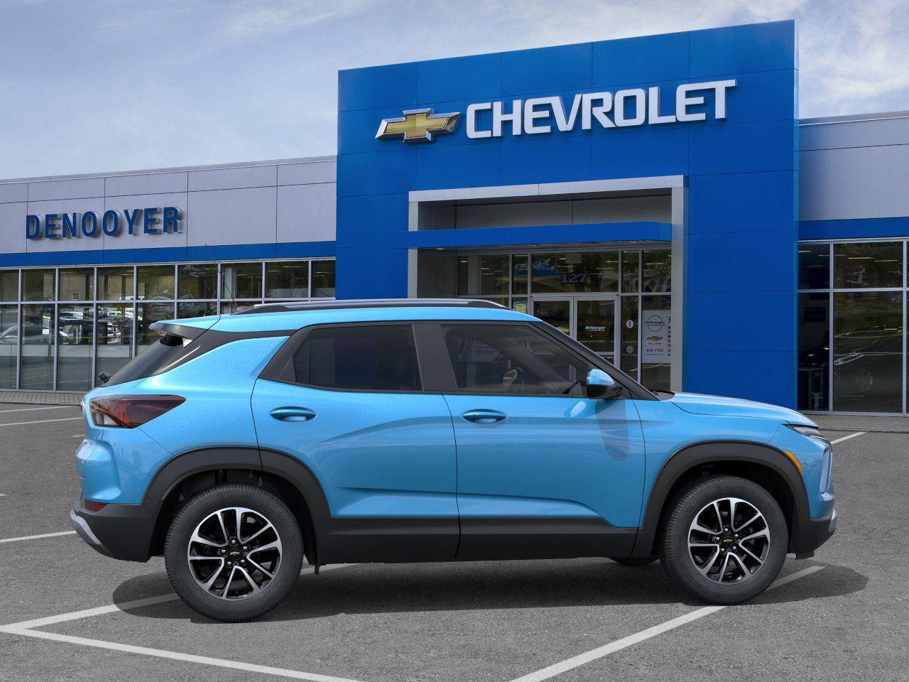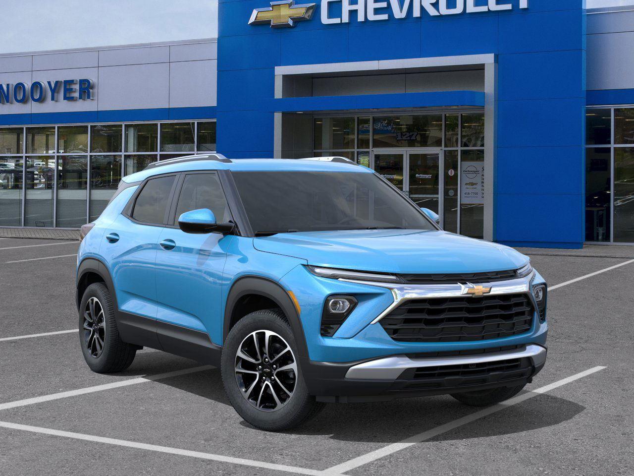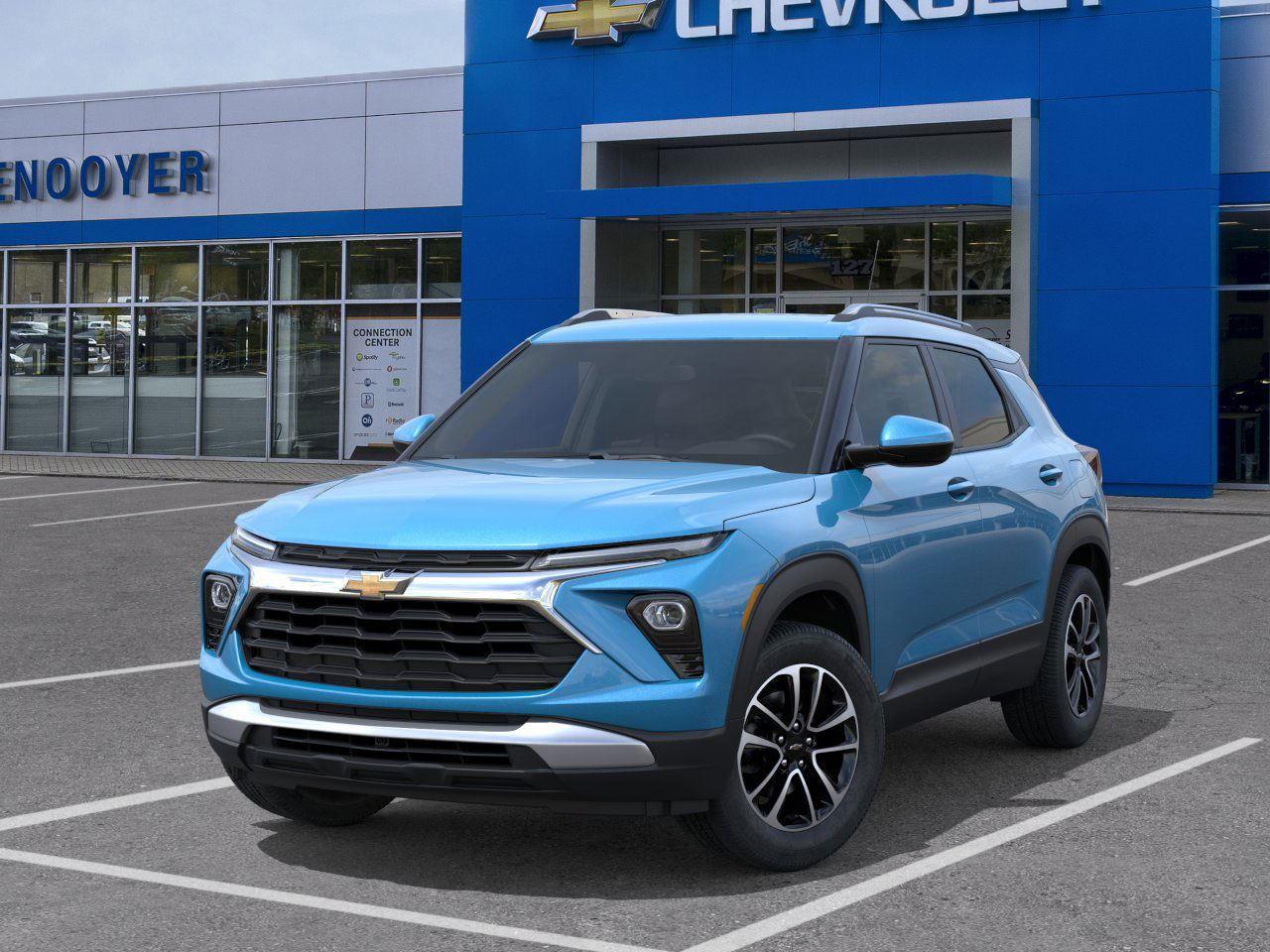 This New 2024 Chevrolet Trailblazer is Marina Blue Metallic in color with an interior that features Jet Black. The vehicle features a turbo engine and comes equipped with a range of safety and safety features. The dealer provides a description of the vehicle and its features. The vehicle is new, with only 2 miles on the odometer. It offers a comprehensive dealership experience and is located at Denooyer Chevrolet in New York.