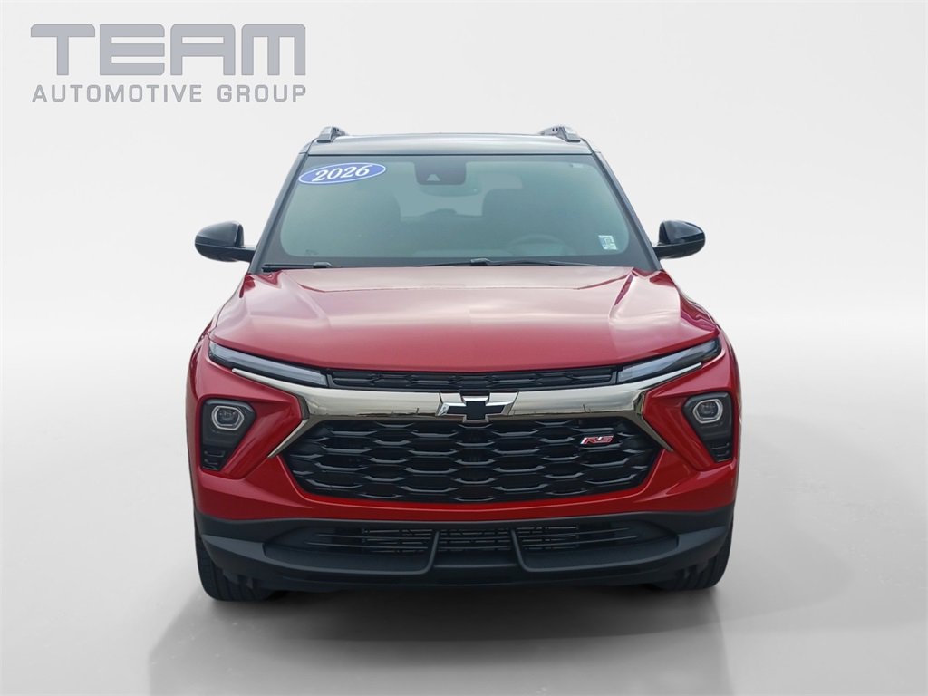 2026 Chevrolet TrailBlazer RS Apex Red 1.3L I3 Turbocharged DOHC 12V LEV3-SULEV30 155hp AWD. Check out all these great options. Convenience Package includes a 120-Volt Power Outlet, Cabin Humidity Sensor, Hands Free Power Programmable Liftgate, Inside Rear-View Auto-Dimming Mirror, Single-Zone Automatic Climate Control, and Wireless Charging. Driver Confidence Package includes Rear Cross Traffic Alert and Rear Park Assist. Additional features include a 2-Way Power Driver Lumbar Seat Adjuster, 8-Way Power Driver Seat, Heated front seats, Heated steering wheel, Panoramic power sunroof, Lane Keep Assist, Apple CarPlay, Android Auto, Bluetooth, Keyless Entry, Lane Departure Warning, Parking Sensors / Assist, Power Liftgate, Remote Start, Side-Impact Air Bags, Sunroof / Moonroof, Wireless Phone Charging.
