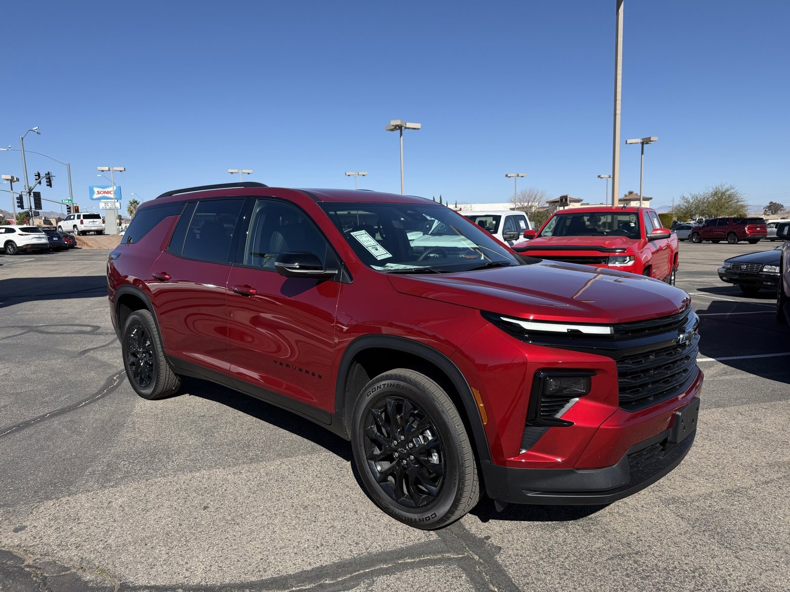 The 2026 Chevrolet Traverse LT offers a blend of comfort, technology, and safety. With a spacious 2-2-3 seating configuration, advanced features like a Driver Information Center, and a powerful 2.5L Turbo engine, this SUV is designed for both family comfort and driving performance. The interior is equipped with premium materials and design elements, while the exterior features a striking Radiant Red Tintcoat and high gloss black accents. Safety and convenience are prioritized with advanced driver assistance systems, rear camera mirror, and a heated steering wheel.