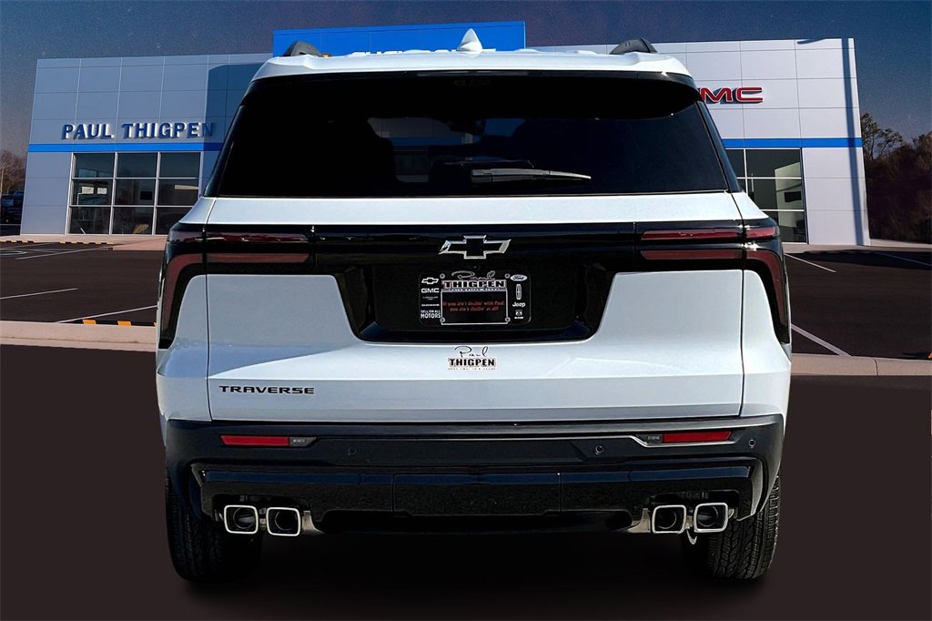 Paul Thigpen Chevrolet GMC has new car prepared this 2026 Chevrolet Traverse and comes with the following Driver Confidence Package (HD Surround Vision, Key Card, Power Outlet, Rear Camera Mirror, Rear Pedestrian Alert, and Traffic Sign Recognition), Enhanced Driving Package (Active Noise Cancellation, Bose Premium 12-Speaker Audio System Feature, Driver Attention Assist, Enhanced Automatic Parking Assist, and Super Cruise), Midnight/Sport Edition (High Gloss Black Door Upper Molding and Wheels: 20 High Gloss Black Painted Aluminum), Preferred Equipment Group 1LT, 3rd row seats: split-bench, 4-Way Manual Front Passenger Seat Adjuster, 4-Wheel Disc Brakes, 6 Speakers, 6-Speaker Audio System Feature, 8-Way Power Driver Seat Adjuster, ABS brakes, Air Conditioning, Alloy wheels, AM/FM radio: SiriusXM with 360L, Apple CarPlay/Android Auto, Auto High-beam Headlights, Automatic temperature control, Brake assist, Bumpers: body-color, Child-Seat-Sensing Airbag, Compass, Delay-off headlights, Driver door bin, Driver vanity mirror, Dual front impact airbags, Dual front side impact airbags, Electronic Stability Control, Emergency communication system: OnStar, Four wheel independent suspension, Front anti-roll bar, Front Bucket Seats, Front Center Armrest, Front dual zone A/C, Front reading lights, Fully automatic headlights, Heated door mirrors, Heated Driver and Front Passenger Seats, Heated front seats, Heated steering wheel, Illuminated entry, Low tire pressure warning, Navigation System, Occupant sensing airbag, Outside temperature display, Overhead airbag, Overhead console, Panic alarm, Passenger door bin, Passenger vanity mirror, Power door mirrors, Power driver seat, Power Liftgate, Power steering, Power windows, Premium Cloth Seat Trim, Radio data system, Radio: : Audio System w/17.7 Diagonal Display, Rear air conditioning, Rear anti-roll bar, Rear reading lights, Rear window defroster, Rear window wiper, Remote keyless entry, Security system, SiriusXM with 360L Trial Subscription, Speed control, Speed-sensing steering, Spoiler, Steering wheel mounted audio controls, Tachometer, Telescoping steering wheel, Tilt steering wheel, Traction control, Trip computer, Turn signal indicator mirrors, Variably intermittent wipers, Voltmeter.
