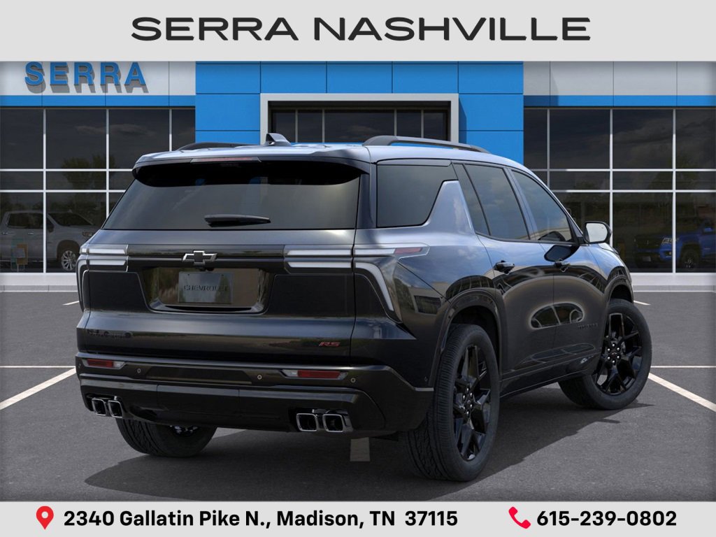 The 2026 Chevrolet Traverse RS is a new SUV at Serra Chevrolet Nashville. This vehicle is Mosaic Black Metallic and well equipped. Ask us about special price, sale price, or sale price is not available.