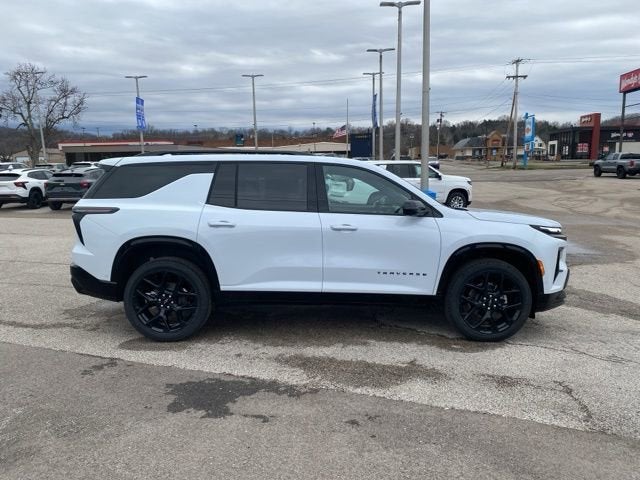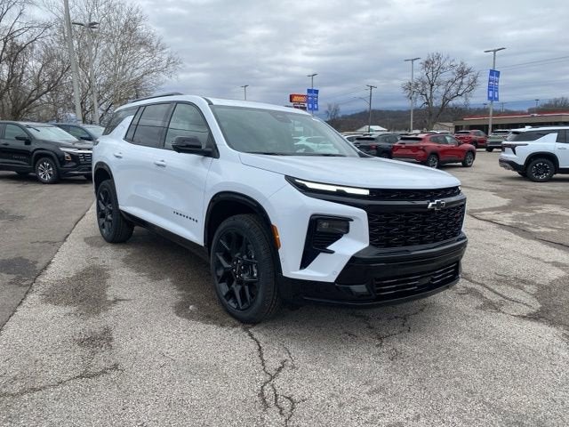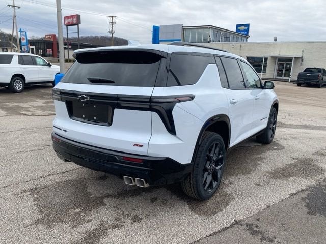 The 2026 Chevrolet Traverse RS is a new SUV in transit to Moses Chevrolet in St. Albans, WV. Please check with the dealer to confirm vehicle availability. The Traverse RS features a 2.5L Turbo engine, advanced safety and driver assistance features, and a premium interior with perforated leather-appointed seat trim. For more details, reference the window sticker or contact the dealer.