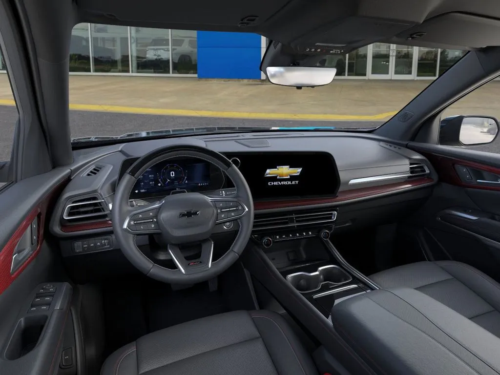 Discover the 2026 Chevrolet Traverse Z71, a striking SUV that blends rugged capability with refined comfort. Featuring a sleek Mosaic Black Metallic exterior, this new model commands attention while offering a versatile interior with Jet Black upholstery accented in bold Red. Powered by a turbocharged 2.5-liter four-cylinder engine delivering 328 horsepower and 326 lb-ft of torque, the Traverse Z71 provides confident performance and impressive fuel economy of up to 24 mpg highway. Its standard all-wheel-drive system and 8-speed automatic transmission ensure smooth handling across diverse terrains, making it ideal for city driving and outdoor adventures. The spacious cabin seats seven, with a hands-free liftgate, third-row comfort, and rear A/C enhancing every journey. Modern convenience features such as Apple CarPlay, Bluetooth, satellite radio, and a large 17.7-inch infotainment screen keep you connected and entertained, while advanced safety technologies add peace of mind on every trip.