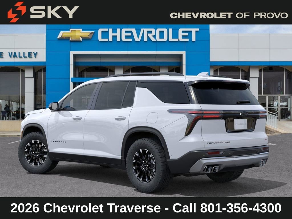 New Price! Experience the new Chevrolet Traverse, available now at Sky Chevrolet of Provo! With bold design, advanced technology, and dependable performance, Chevrolet makes every mile more exciting. From Utah Valley’s city streets to mountain canyon drives, the Traverse is built to handle it all with confidence. Call 801-356-4300 today to schedule your test drive and see what makes it stand out! Polar White Tricoat 2026 Chevrolet Traverse Z71 AWD 8-Speed Automatic 2.5L DOHC AWD. Recent Arrival! Price includes: $1,000 Down Payment Assistance. Must Finance with GM Financial. $1,500 trade in allowance program for customers that own a 2018 or newer passenger car or truck with less than 80,000 miles and trade in their vehicle towards the purchase of a new 2025-2026 New Chevrolet. Some restrictions may apply. Contact dealer for details. Peace of mind. A name you can trust. Sky Chevrolet of Provo is dedicated to your satisfaction before, during, and after your purchase. We'll go the extra mile to take care of you.