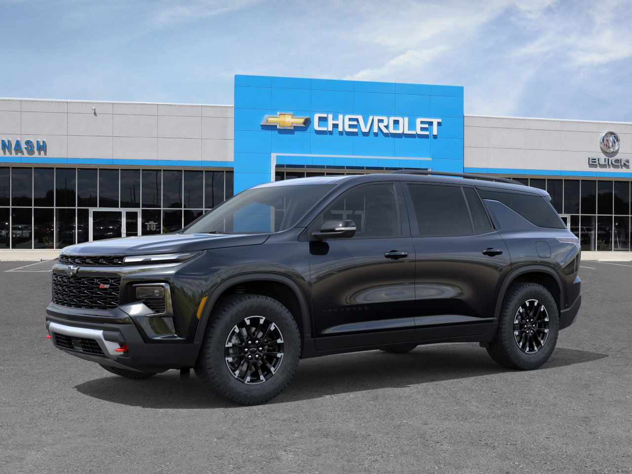 This 2026 Chevrolet Traverse Z71 in Mosaic Black Metallic comes with the following features: 2.5L DOHC 8-Speed Automatic AWD AWD Driver Confidence Package (HD Surround Vision, Key Card, Power Outlet, Rear Camera Mirror, Rear Pedestrian Alert, and Traffic Sign Recognition), Preferred Equipment Group 2Z7, AWD, 3 Years SiriusXM, 3rd row seats: split-bench, 4-Way Manual Front Passenger Seat Adjuster, 4-Wheel Disc Brakes, 6 Speakers, 6-Speaker Audio System Feature, 8-Way Power Driver Seat Adjuster, ABS brakes, Air Conditioning, Alloy wheels, AM/FM radio: SiriusXM with 360L, Apple CarPlay/Android Auto, Auto High-beam Headlights, Automatic temperature control, Brake assist, Child-Seat-Sensing Airbag, Compass, Delay-off headlights, Deleted Mobile Service Plus, Driver door bin, Driver vanity mirror, Dual front impact airbags, Dual front side impact airbags, Electronic Stability Control, Emergency communication system: OnStar, Evotex Seat Trim, Four wheel independent suspension, Front anti-roll bar, Front Bucket Seats, Front Center Armrest, Front dual zone A/C, Front reading lights, Fully automatic headlights, Heated door mirrors, Heated Driver and Front Passenger Seats, Heated front seats, Heated steering wheel, Illuminated entry, Low tire pressure warning, Navigation System, Occupant sensing airbag, Outside temperature display, Overhead airbag, Overhead console, Panic alarm, Passenger door bin, Passenger vanity mirror, Power door mirrors, Power driver seat, Power Dual Glass Panoramic Sliding Sunroof, Power Liftgate, Power steering, Power windows, Radio data system, Radio: : Audio System w/17.7 Diagonal Display, Rear air conditioning, Rear anti-roll bar, Rear reading lights, Rear window defroster, Rear window wiper, Remote keyless entry, Security system, SiriusXM with 360L Trial Subscription, Speed control, Speed-sensing steering, Spoiler, Steering wheel mounted audio controls, Tachometer, Telescoping steering wheel, Tilt steering wheel, Traction control, Trip computer, Turn signal indicator mirrors, Variably intermittent wipers, Voltmeter.