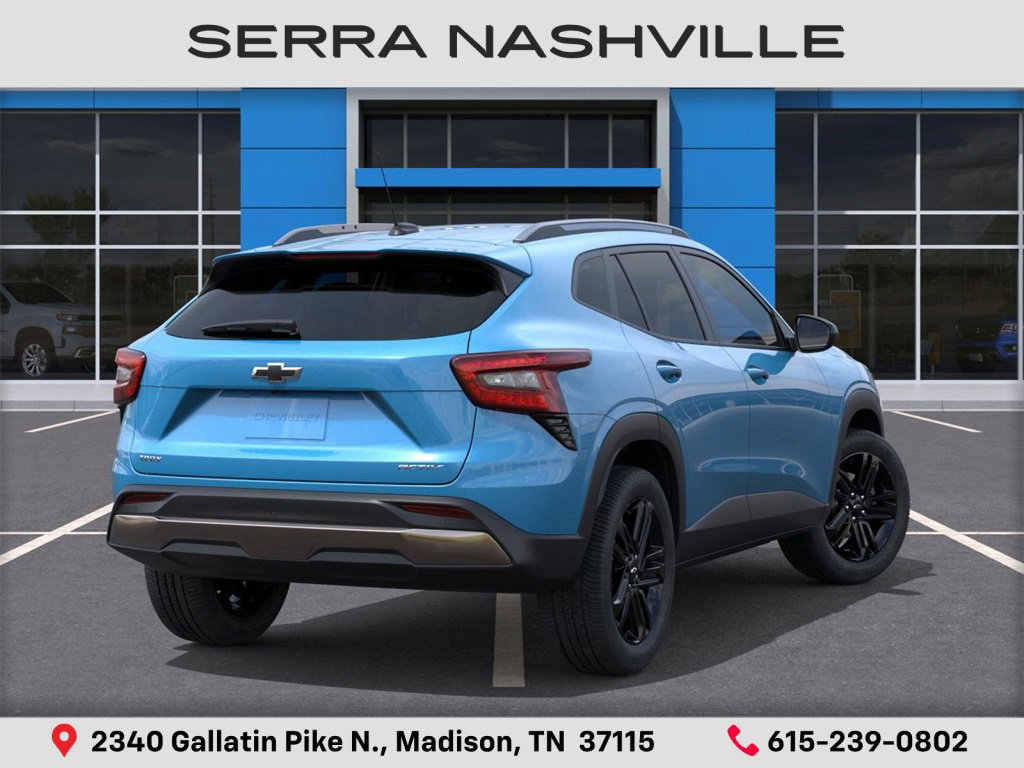 2026 Chevrolet Trax ACTIV For sale at Serra Chevrolet Nashville - Serra Nashville has the largest selection of the new Chevrolet Trax in Nashville. This vehicle is Marina Blue Metallic and well equipped with Driver Confidence Package (Adaptive Cruise Control, Lane Change Alert with Side Blind Zone Alert, Rear Cross Traffic Alert, and Rear Park Assist), 2-Way Adjustable Front Head Restraints, 2-Way Power Driver Lumbar Seat Adjuster, 3 Years SiriusXM, 3.50 Final Drive Axle Ratio, 4-Way Manual Front Passenger Seat Adjuster, 4-Wheel Disc Brakes, 6 Speakers, 6-Speaker Audio System Feature, 8-Way Power Driver Seat Adjuster, ABS brakes, Air Conditioning, Alloy wheels, AM/FM radio: SiriusXM, Auto High-beam Headlights, Automatic temperature control, Brake assist, Bumpers: body-color, Compass, Delay-off headlights, Driver door bin, Driver vanity mirror, Dual front impact airbags, Dual front side impact airbags, Electronic Stability Control, Emergency communication system: OnStar One Essentials, Evotex Seat Trim, Exterior Parking Camera Rear, Front and Rear Jet Black All-Weather Floor Liners, Front anti-roll bar, Front Bucket Seats, Front Center Armrest, Front reading lights, Front wheel independent suspension, Fully automatic headlights, Heated door mirrors, Heated Driver and Front Passenger Seats, Heated front seats, Heated steering wheel, Illuminated entry, Leather steering wheel, Low tire pressure warning, Occupant sensing airbag, Outside temperature display, Overhead airbag, Overhead console, Panic alarm, Passenger door bin, Passenger vanity mirror, Power door mirrors, Power driver seat, Power steering, Power windows.