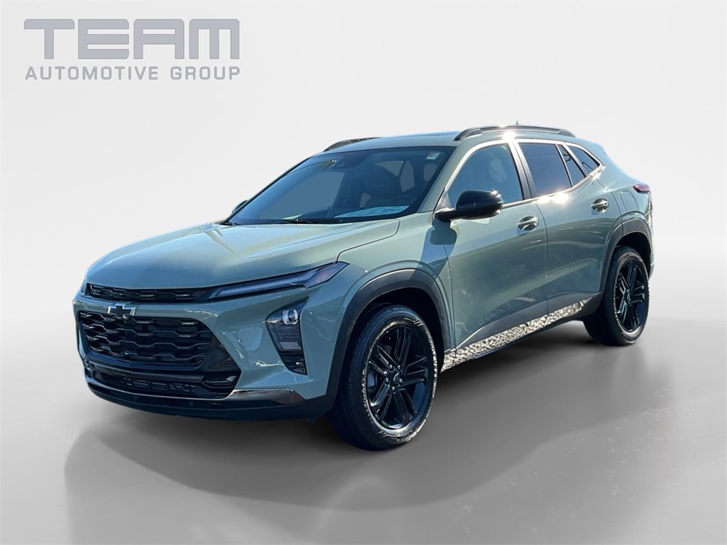 2026 Chevrolet Trax ACTIV Cacti Green ECOTEC 1.2L Turbo FWD. Check out all these great options. Driver Confidence Package (Adaptive Cruise Control, Lane Change Alert with Side Blind Zone Alert, Rear Cross Traffic Alert, and Rear Park Assist), License Plate Front Mounting Package, Preferred Equipment Group 1SA, Sunroof Package (Power Sliding Glass Sunroof with Manual Shade and Wireless Cell Phone Charging), Trax ACTIV, Cacti Green, Jet Black With Artemis Accents. Residency restrictions apply to all dealer discounts. Price includes $500 - Chevrolet GM Financial APR & NCC Consumer Cash Program. $30.28 per $1000 financed. Available to well qualified buyers who finance through GM Financial.