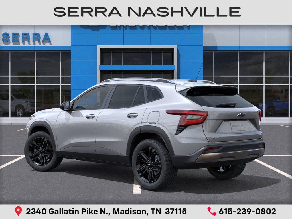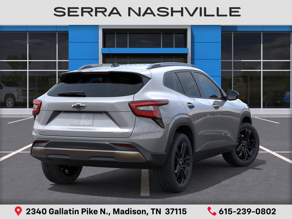 2026 Chevrolet Trax Activ For sale at Serra Chevrolet Nashville - Serra Nashville has the largest selection of the new Chevrolet Trax in Nashville. This vehicle is Sterling Gray Metallic and well equipped with Driver Confidence Package (Adaptive Cruise Control, Lane Change Alert with Side Blind Zone Alert, Rear Cross Traffic Alert, and Rear Park Assist), 2-Way Adjustable Front Head Restraints, 2-Way Power Driver Lumbar Seat Adjuster, 3 Years SiriusXM, 3.50 Final Drive Axle Ratio, 4-Way Manual Front Passenger Seat Adjuster, 4-Wheel Disc Brakes, 6 Speakers, 6-Speaker Audio System Feature, 8-Way Power Driver Seat Adjuster, ABS brakes, Air Conditioning, Alloy wheels, AM/FM radio: SiriusXM, Auto High-beam Headlights, Automatic temperature control, Brake assist, Bumpers: body-color, Compass, Delay-off headlights, Driver door bin, Driver vanity mirror, Dual front impact airbags, Dual front side impact airbags, Electronic Stability Control, Emergency communication system: OnStar One Essentials, Evotex Seat Trim, Exterior Parking Camera Rear, Front and Rear Jet Black All-Weather Floor Liners, Front anti-roll bar, Front Bucket Seats, Front Center Armrest, Front reading lights, Front wheel independent suspension, Fully automatic headlights, Heated door mirrors, Heated Driver and Front Passenger Seats, Heated front seats, Heated steering wheel, Illuminated entry, Leather steering wheel, Low tire pressure warning, Occupant sensing airbag, Outside temperature display, Overhead airbag, Overhead console, Panic alarm, Passenger door bin, Passenger vanity mirror, Power door mirrors, Power driver seat, Power steering, Power windows, Premium audio system: Chevrolet Infotainment 3, Radio data system, Radio: AM/FM Stereo Audio System, Rear window defroster, Rear window wiper, Remote keyless entry, Security system, SiriusXM Trial Subscription, Speed control, Split folding rear seat, Spoiler, Steering wheel mounted audio controls, Tachometer, Telescoping steering wheel, Tilt steering wheel, Traction control, Trip computer, Variably intermittent wipers, Wheels: 18 Black-Painted Aluminum, and Wireless Apple CarPlay/Wireless Android Auto. Ask us about special APR rates and lease offers and incentives on most 2026 Chevrolet Trax.