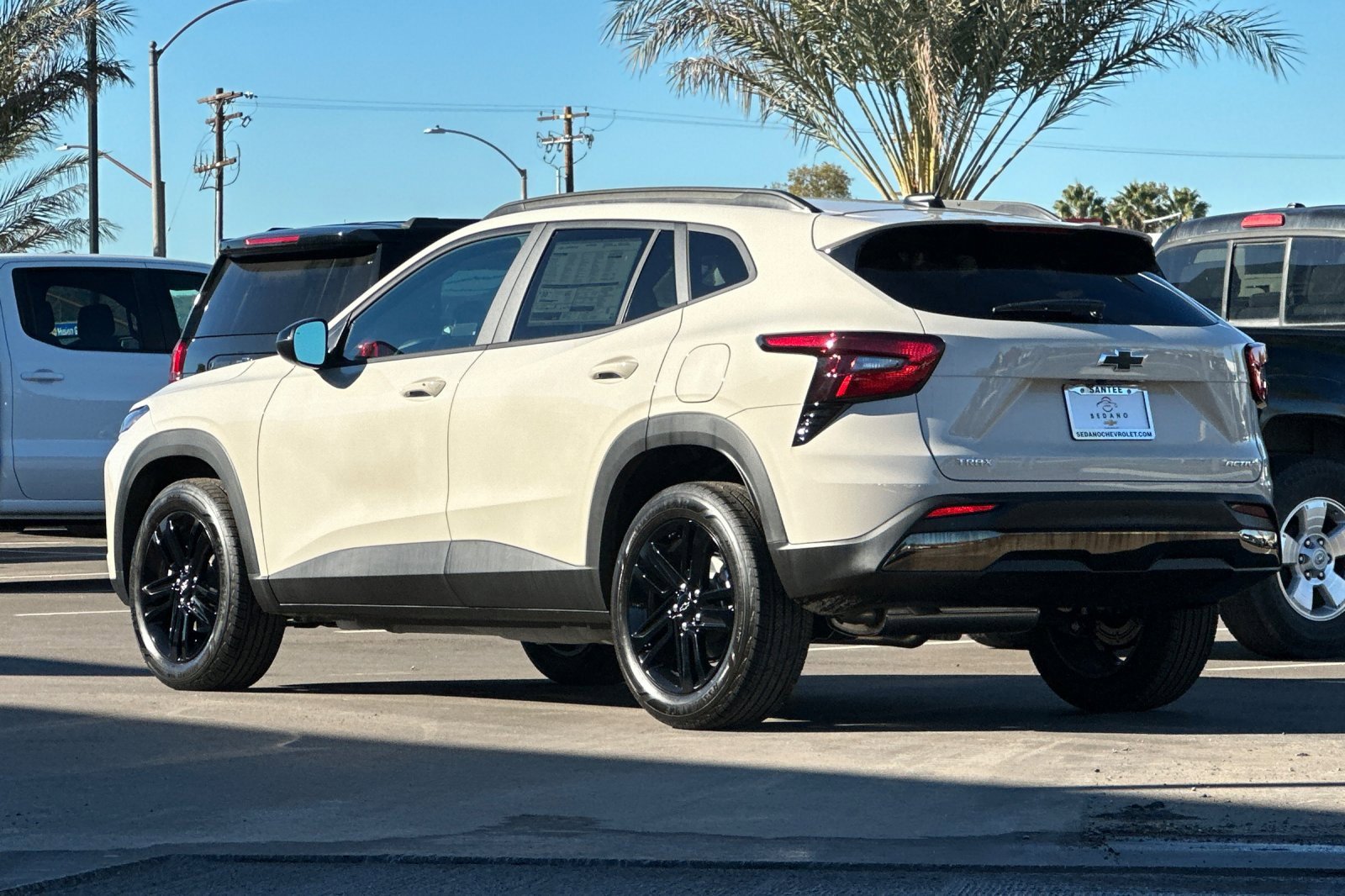 2026 White Sands Chevrolet Trax ACTIV FWD 6-Speed Automatic ECOTEC 1.2L Turbo28/32 City/Highway MPG Sedano Chevrolet – Serving All of San Diego Shop new Chevrolets with confidence at Sedano Chevrolet, proudly serving East San Diego County—including Santee, El Cajon, La Mesa, Lakeside, Spring Valley, Rancho San Diego, Lemon Grove, and Poway. We offer clear, upfront pricing and exceptional customer service—whether you're leasing or financing. We carry the full lineup of Chevrolet’s best-selling models, including the Silverado, Equinox, Trax, Traverse, Trailblazer, Blazer, and Bolt EV. Every vehicle is priced aggressively and ready for immediate delivery. Our goal is simple: make your car buying experience easy, transparent, and fast. Browse online, get real-time quotes, or visit us in person—we’re here to help you every step of the way. Sedano Chevrolet — San Diego’s go-to source for new Chevys, great deals, and honest service. MUST FINANCE WITH GMF