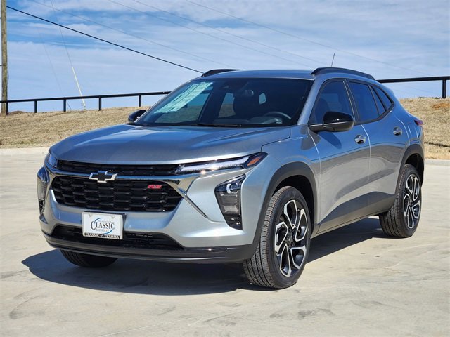Built with an athletic edge, the 2026 Chevrolet Trax 2RS with the Driver Confidence Pack in Sterling Gray Metallic delivers sporty flair and agile presence on every drive. Powered by a TurboCharged 1.2 Liter 3 Cylinder serving up 137hp to a 6 Speed Automatic transmission engineered for energetic adventures. Able to see nearly 32mpg on the highway as you go, this Front Wheel Drive SUV also takes you through town in ultra-sporty style. Terrific Trax highlights include signature LED lighting, 19-inch black alloy wheels, roof rails, a rear spoiler, bold RS bumpers, heated power mirrors, and eye-catching black accents. Crafted for premium comfort, our 2RS cabin rewards you with supportive heated EvoTex front seats, a heated flat-bottom steering wheel, single-zone automatic climate control, cruise control, a 12V power outlet, remote keyless entry/ignition, and remote start. An 11-inch touchscreen and 8-inch driver display anchor the infotainment system so you can enjoy WiFi compatibility, wireless Apple CarPlay/Android Auto, Bluetooth, voice control, and a six-speaker sound system as you explore your world. Travel safely, knowing Chevrolet provides intelligent driver assistance from automatic braking, lane-keeping assistance, lane change alert, pedestrian detection, forward collision warning, rear cross traffic alert, adaptive cruise control, an HD rearview camera, a rear seat reminder, tire pressure monitoring, and more. Try our Trax 2RS to discover a compact SUV that commands respect! Save this Page and Call for Availability. We Know You Will Enjoy Your Classic Chevrolet Cadillac of Texoma Test Drive Towards Ownership!