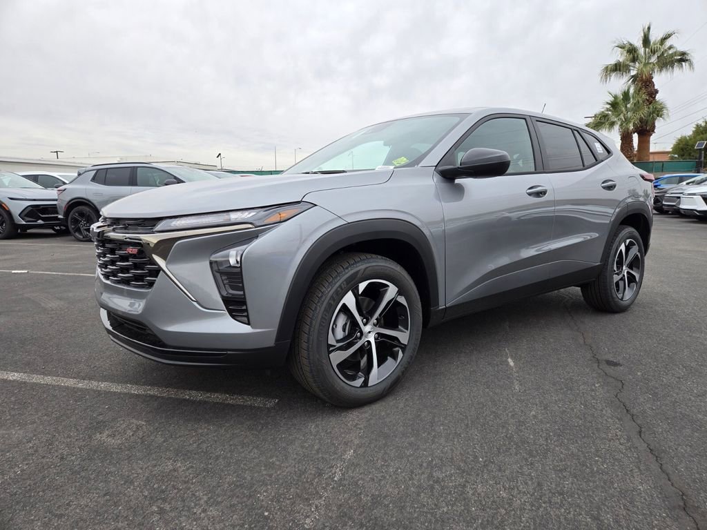 The 2026 Chevrolet Trax 1RS offers a blend of comfort, technology, and safety. With its ECOTEC 1.2L Turbo engine and front wheel drive, this SUV is designed for efficiency and ease of handling. The interior features a Jet Black/Gray with Red accents color scheme, complemented by cloth seat trim. Advanced safety and convenience features, such as a power sunroof, heated steering wheel, and Chevrolet Infotainment 3 system with an 8" color touchscreen, make driving and passengers comfortable. The Trax 1RS is equipped with the latest in connectivity and driver assistance technologies, providing a smooth and secure driving experience.
