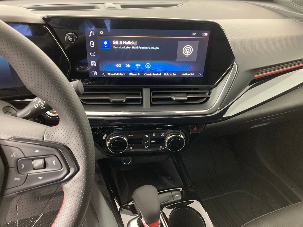 The 2026 Chevrolet Trax 2RS offers a blend of comfort, technology, and safety. With its ECOTEC 1.2L Turbo engine and front wheel drive, this SUV is designed for efficiency and a smooth ride. The interior features heated seats, an 11.5" diagonal color touchscreen, and advanced safety systems. The exterior is Apex Red with a Jet Black interior and Red accents. This vehicle is equipped with the latest in connectivity and driver assistance, making it a practical choice for those seeking versatility and modern technology in an SUV.