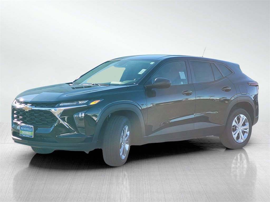 Pricing Disclosure: Roseville Chevrolet's Dealer Market Value Adjustment applies to everyone due to current market conditions. Black Metallic 2026 Chevrolet Trax LS FWD 6-Speed Automatic ECOTEC 1.2L Turbo. 28/32 City/Highway MPG.