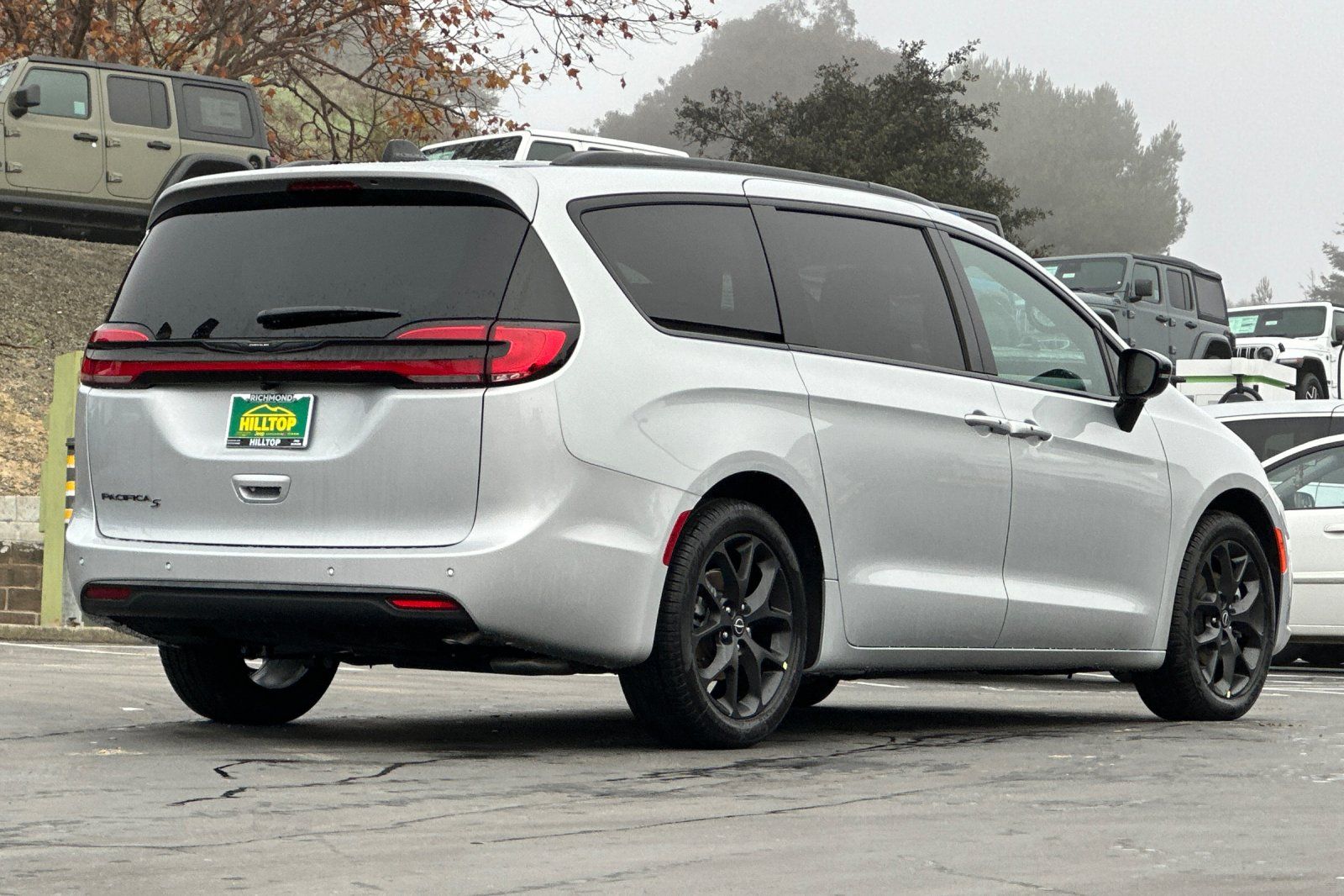 Silver Mist Clearcoat 2026 Chrysler Pacifica Select FWD 9-Speed 948TE Automatic 3.6L V6 24V VVT 10.1" Touchscreen Display, 17" x 7.0" Aluminum Wheels, 3rd row seats: split-bench, 4-Wheel Disc Brakes, 4G LTE Wi-Fi Hot Spot, 6 Speakers, ABS brakes, Air Conditioning, Alloy wheels, AM/FM radio: SiriusXM, Anodized Ink Badging, Apple CarPlay, Apple CarPlay/Android Auto, Auto-dimming Rear-View mirror, Automatic temperature control, Black Day Light Opening Moldings, Black Seats, Black Stow 'N Place Roof Rack, Brake assist, Bumpers: body-color, Caprice Leatherette Bucket Seats, Caprice Leatherette with S Logo, Compass, Connectivity - US/Canada, Delay-off headlights, Disassociated Touchscreen Display, Driver door bin, Driver vanity mirror, Driver's Seat Mounted Armrest, Dual front impact airbags, Dual front side impact airbags, Electronic Stability Control, Emergency communication system: Chrysler Connect, For Details, Visit DriveUconnect.com, Four wheel independent suspension, Front anti-roll bar, Front Bucket Seats, Front dual zone A/C, Front fog lights, Front reading lights, Fully automatic headlights, Garage door transmitter, Google Android Auto, GPS Antenna Input, Heated door mirrors, Heated front seats, Heated steering wheel, Illuminated entry, Integrated Active Noise Cancellation, Integrated Center Stack Radio, Knee airbag, Low tire pressure warning, Memory seat, Occupant sensing airbag, Outside temperature display, Overhead airbag, Overhead console, Panic alarm, ParkView Rear Back-Up Camera, Passenger door bin, Passenger seat mounted armrest, Passenger vanity mirror, Piano Black Interior Accents, Power door mirrors, Power driver seat, Power Liftgate, Power steering, Power windows, Premium Fascia Upper/Lower Grille with Black Surround, Premium Rear Fascia Black, Quick Order Package 27L, Radio data system, Radio: Uconnect 5 with 10.1" Display, Rear air conditioning, Rear reading lights, Rear window defroster, Reclining 3rd row seat, Remote keyless entry, S Appearance Package, S Badge, Security system, Speed control, Split folding rear seat, Spoiler, Steering wheel mounted audio controls, Touring Suspension, Traction control, Turn signal indicator mirrors.