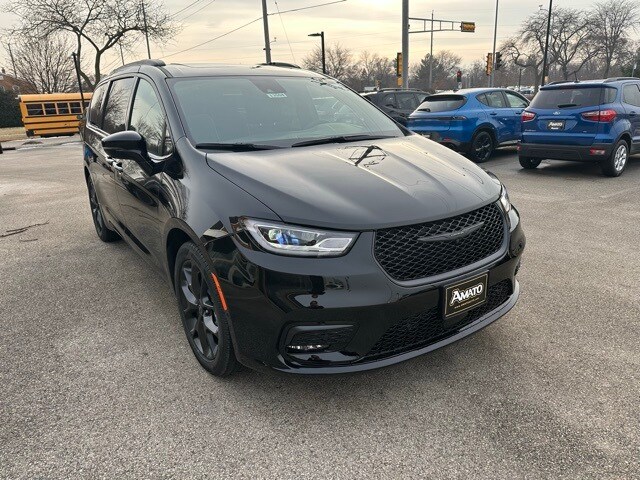 The 2026 Chrysler Pacifica Limited combines refined luxury, advanced technology, and family-friendly versatility into a premium minivan designed for comfort, convenience, and safety. Powered by a 3.6L V6 engine paired with a 9-speed automatic transmission, this Pacifica delivers smooth and efficient performance, while front-wheel drive and touring suspension ensure a composed ride on city streets or highways. The 3.25 axle ratio and trailing arm rear/strut front suspension with coil springs provide excellent handling and stability, with a GVWR of 6,055 lbs to support passengers and cargo. Safety features are comprehensive, including forward collision warning plus, collision mitigation-front, blind spot detection, rear cross-path detection, ParkSense front/rear park assist with stop, 360 surround view camera system, dual-stage airbags, curtain airbags across three rows, knee airbags, tire pressure monitoring, adaptive cruise control, and rear child safety locks. This Pacifica also includes key safety and convenience technology, like Soft Close Doors, Power Liftgate, Power Sliding Rear Doors, and Express Open/Close sliding and tilting glass sunroof with power sunshade. Inside, the Pacifica Limited is designed for premium comfort and convenience. It features Nappa leather bucket seats with S logo, heated and ventilated front seats, heated TechnoLeather leatherette steering wheel, and full cloth headliner. Passengers enjoy a spacious cabin with a fixed 60-40 split-bench leatherette 3rd-row seat, manual recline, and fold-into-floor functionality, as well as multiple 12V and 120V power outlets, rear cupholders, illuminated front cupholders, and cargo space lights. The Uconnect 5 Nav system with 10.1" display integrates Apple CarPlay, Android Auto, streaming audio, Bluetooth connectivity, real-time SiriusXM traffic, and integrated active noise cancellation for a refined and connected driving experience. Exterior styling reflects sophistication and sporty appeal, with black gloss exterior mirrors, Diamond Black Crystal Pearlcoat paint, premium fascia upper/lower grille with black surround, black stow n place roof rack, and S badging. Additional exterior highlights include 20" S-model aluminum wheels with self-sealing all-season tires, LED brakelights, power heated side mirrors with turn signals, body-colored front and rear bumpers with chrome inserts, deep tinted glass, and a lip spoiler—all combining to create a modern, aggressive stance with both function and flair. The 2026 Chrysler Pacifica Limited offers a perfect balance of luxury, safety, and technology, making it an ideal family minivan for those who want style, comfort, and confidence on the road.