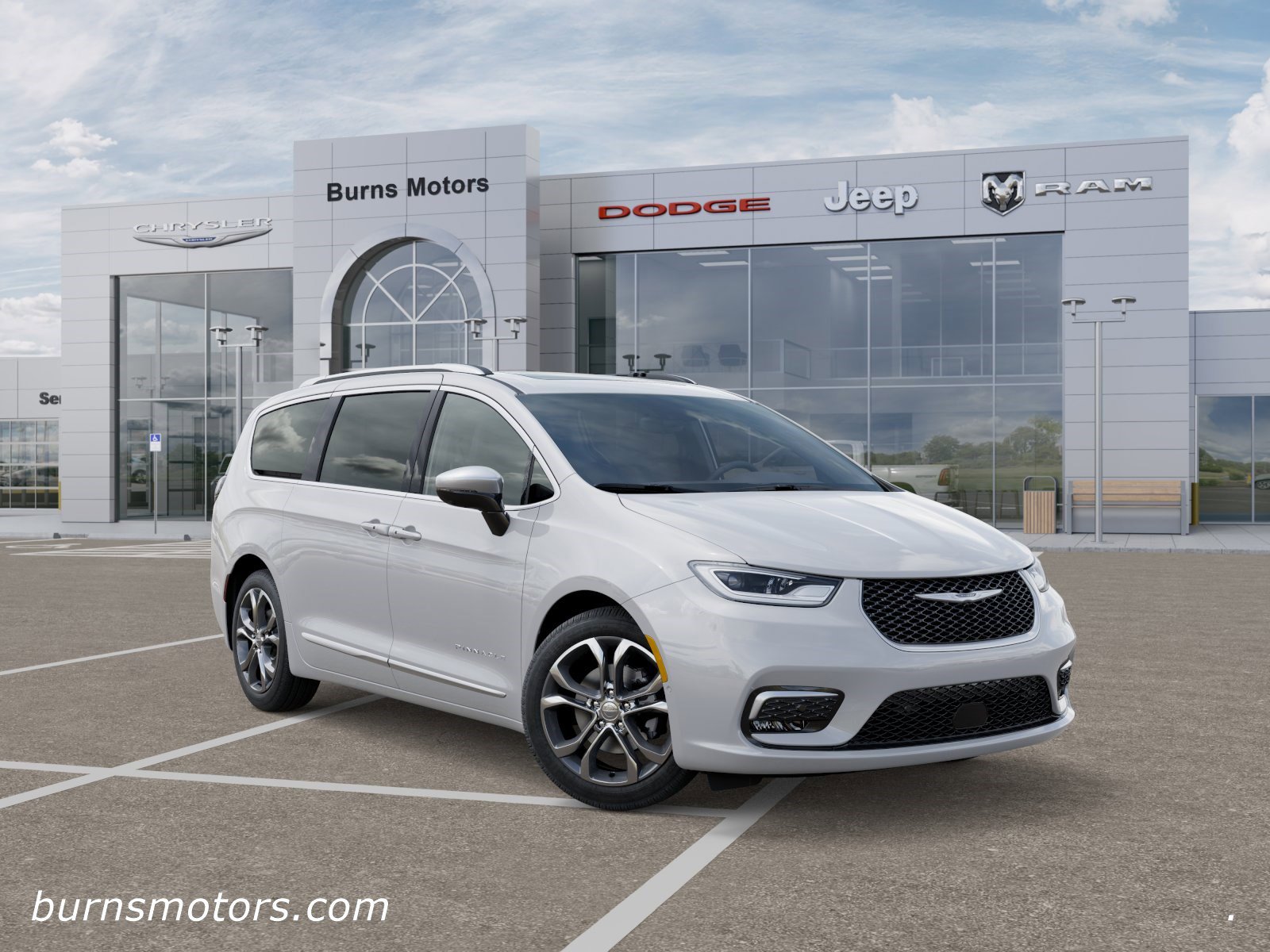 Vehicle Status: In Transit. Call us for an estimated arrival date. Features include: Ventilated Premium Leather Seats, 10.1 Touchscreen Display, Back-up Camera, Navigation, Panoramic Sunroof, 19 Luxury Speakers, Remote Start, Keyless Enter-N-Go, Blind-spot Monitoring, Lane Departure Warning, Forward Collision Warning, Adaptive Cruise Control, 3rd Row Seating, Bluetooth, Android Auto / Apple CarPlay, Wi-Fi Hotspot. If you are interested in this Chrysler Pacifica and would like more information, I want to encourage you to call me. My name is Big Lew Corya, and I am the Business Development Center / Internet Director here at Burns Motors. I or one of my staff members, Maria, Kloe, or Ava will do our very best to assist you. We strive to have complete and accurate data, but please verify all equipment and pricing with a sales representative before purchase. Burns Motors has been doing Honest Business since 1948, and we would like to earn yours!