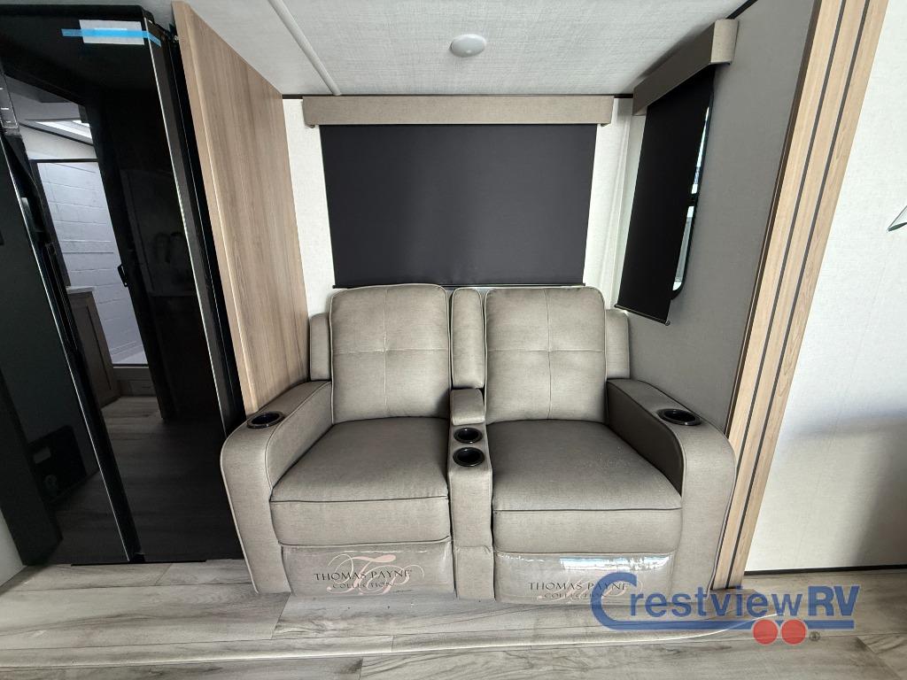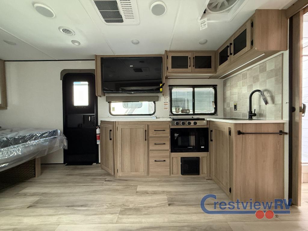 Keystone Coleman Legacy travel trailer 1905RB highlights: Spacious Slide Out, Full Rear Bath, Dual Bedside Wardrobes/Nightstands, 16' Power Awning, King Bed. You can't go wrong with this couple's trailer! Once you arrive at the campground, you can unload the pass-through storage, then put out the 16' power awning and relax in your camp chairs. The theater seating with a removable table provides a place to relax inside if the weather isn't cooperating, and there is a 50" TV if you want to stay indoors all day and watch movies! You can make lunch on the three burner cooktop or in the air fryer/convection microwave when you get hungry, and there is a 16 cu. ft. 12V refrigerator to keep cold items fresh. The full rear bath includes a 30" x 40" spacious shower, a large linen closet, and a medicine cabinet to name a few comforts! With any Coleman Legacy travel trailer by Keystone, you will find added features to make each camping experience one to remember! There is a painted fiberglass front cap with an LED light, a walkable roof, tinted safety glass windows, plus a power tongue jack and electric stabilizer jacks for easy set up. Head inside to enjoy a 6' 10" ceiling height, blackout roller shades, a stainless steel kitchen sink, and an Oxygenics Fury showerhead for added comfort. Each model also features Keystone Exclusives, such as color-coded unified wiring, Tuf-Loc thermoplastic duct joiners, and an I-beam frame with stamped steel cross-members and outriggers for added strength.