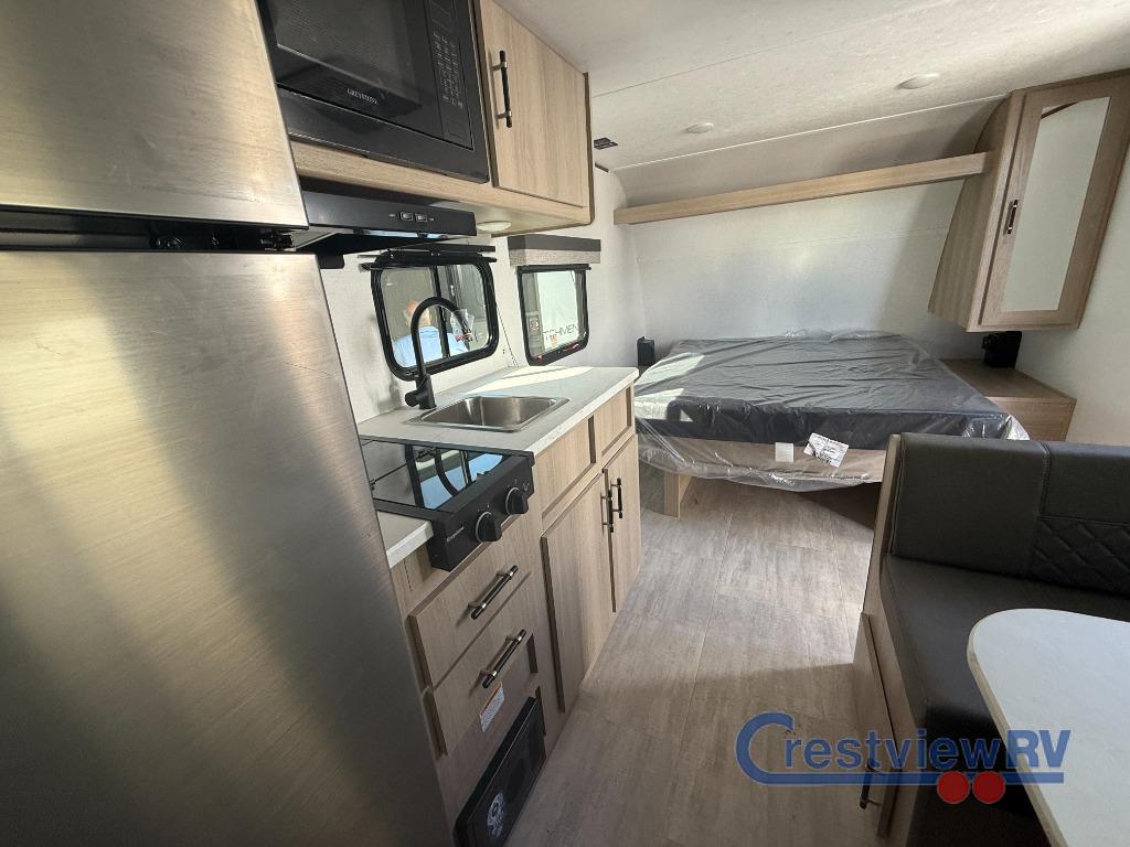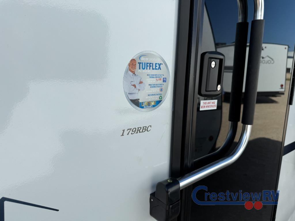 This Dutchmen Colorado Mini travel trailer 17RBC highlights: Booth dinette, 8' patio awning, microwave oven, shower with exhaust fan. This single axle travel trailer is the perfect couple's trailer with space for an overnight guest on the booth dinette. The walk-around queen bed up front will provide a great night's rest instead of sleeping on an air mattress, and the full rear bath means you won't have to use the camp's facilities at night. You'll also find a refrigerator for food storage, a cooktop, plus a microwave oven for all your cooking needs! With any lightweight Colorado travel trailer by Dutchmen, you will enjoy plenty of interior space, quality construction, and conveniences to make each trip enjoyable. There are full bath and kitchen amenities to make life at the campground easier than ever, plus you'll find cozy seating spaces and comfortable sleeping arrangements to fit your needs. There are also plenty of storage spaces for your personal belongings, camp gear, food and more!