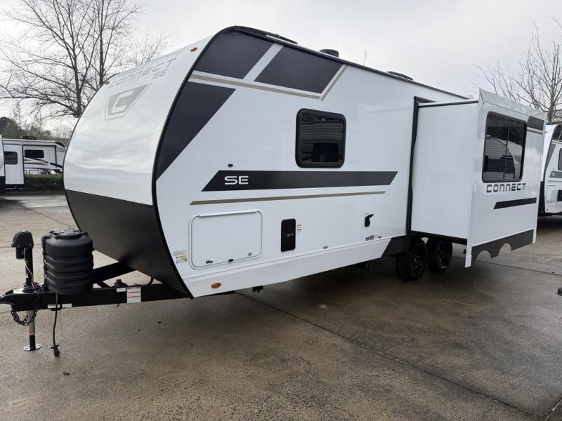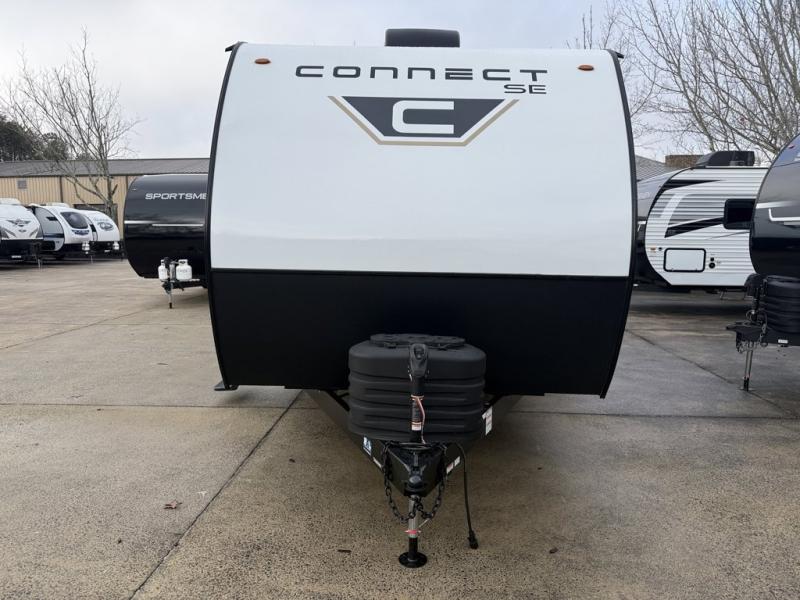 The spacious rear kitchen is equipped with a pantry for ample storage, a three-burner cooktop for culinary creativity, a refrigerator, and a cozy booth dinette for meals or socializing. This unit also has a hutch for additional storage and display. You can unwind in the plush theater seating, organize all of your footwear in the convenient shoe storage. Further, you can relax and refresh after a long day of adventures in the walk-through bath, which provides easy access and convenience, and have a good night's sleep in the spacious front bedroom boasting an ample queen bed and two wardrobes to keep your favorite outfits neat. Finally, head outside and create unforgettable memories under the protection of the exterior power awning. Each Connect SE travel trailer by KZ includes an NXG frame, which is a high quality, highly engineered frame that provides a lightweight yet strong foundation for your RV. The Climate package provides added insulation to extend your camping season year-round with a fully enclosed, insulated and heated underbelly to protect the tanks and pipes. Some top features include the 17-inch range with illuminated control knobs, the seamless countertops with a deep undermount stainless steel kitchen sink including a sink cover for added countertop space, and a black high-rise faucet. You will also enjoy the KZ Engage that is powered by OneControl to monitor and control the battery levels, the slide(s), the leveling system, the awning(s), plus the inside and outside lighting. Choose your favorite today!