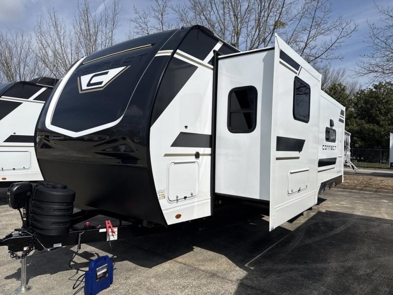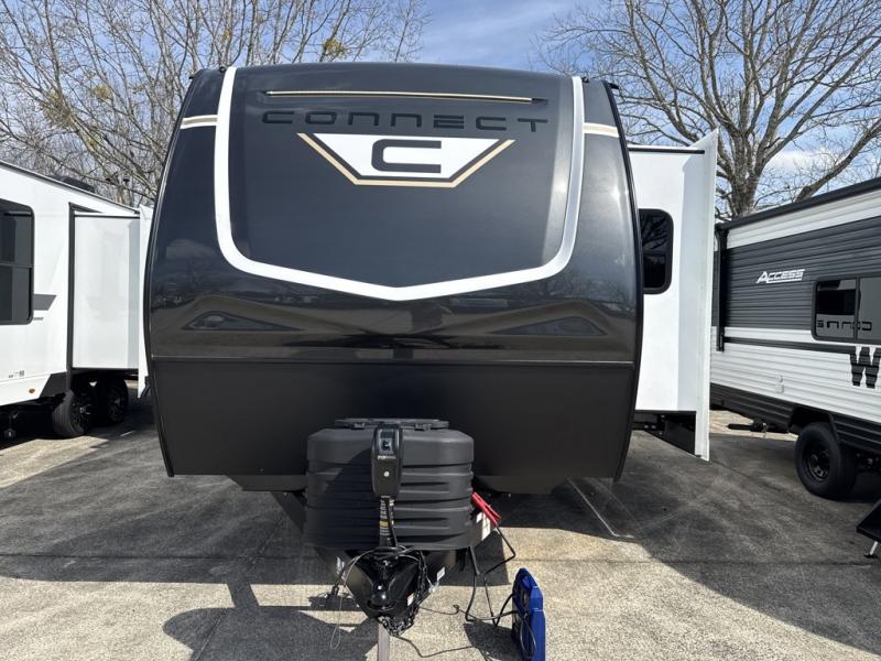 The perfect couple's trailer is found in this Connect! After you wake up each morning on the king bed slide, you can use the walk-in closet to get ready for the day. There is also a dresser here and a TV mount if you want the option to watch movies in bed. A three burner range and microwave oven in the full kitchen will let you make breakfast before heading out for the day, and the theater seating will provide a place to relax once you get back. The entertainment center with a fireplace will make this room feel more like home, and the kitchen island includes ample counter space with its flip-up top. The full rear bath includes dual bath sinks so you both can get ready at the same time, and the wardrobe with washer and dryer prep gives you the option to add these appliances. The KZ Connect travel trailer comes with an RV Airflow System which optimizes the airflow for your air conditioner. This improves performance, speeds up cooling times, and reduces noise in your trailer. Some of the other helpful features found on the Connect are the heated, insulated, and enclosed underbelly, the exterior docking station, the fiberglass front cap with front windshield, the 82" interior ceiling height, and the protective front diamond plate. There are some useful technological features, like the two LED motion-sensor lights, the HDMI and USB charger. The KZ Engage is powered by OneControl, and it monitors battery levels and controls slide rooms, the leveling system, the awning, inside/outside lighting, and the TPMS prep.